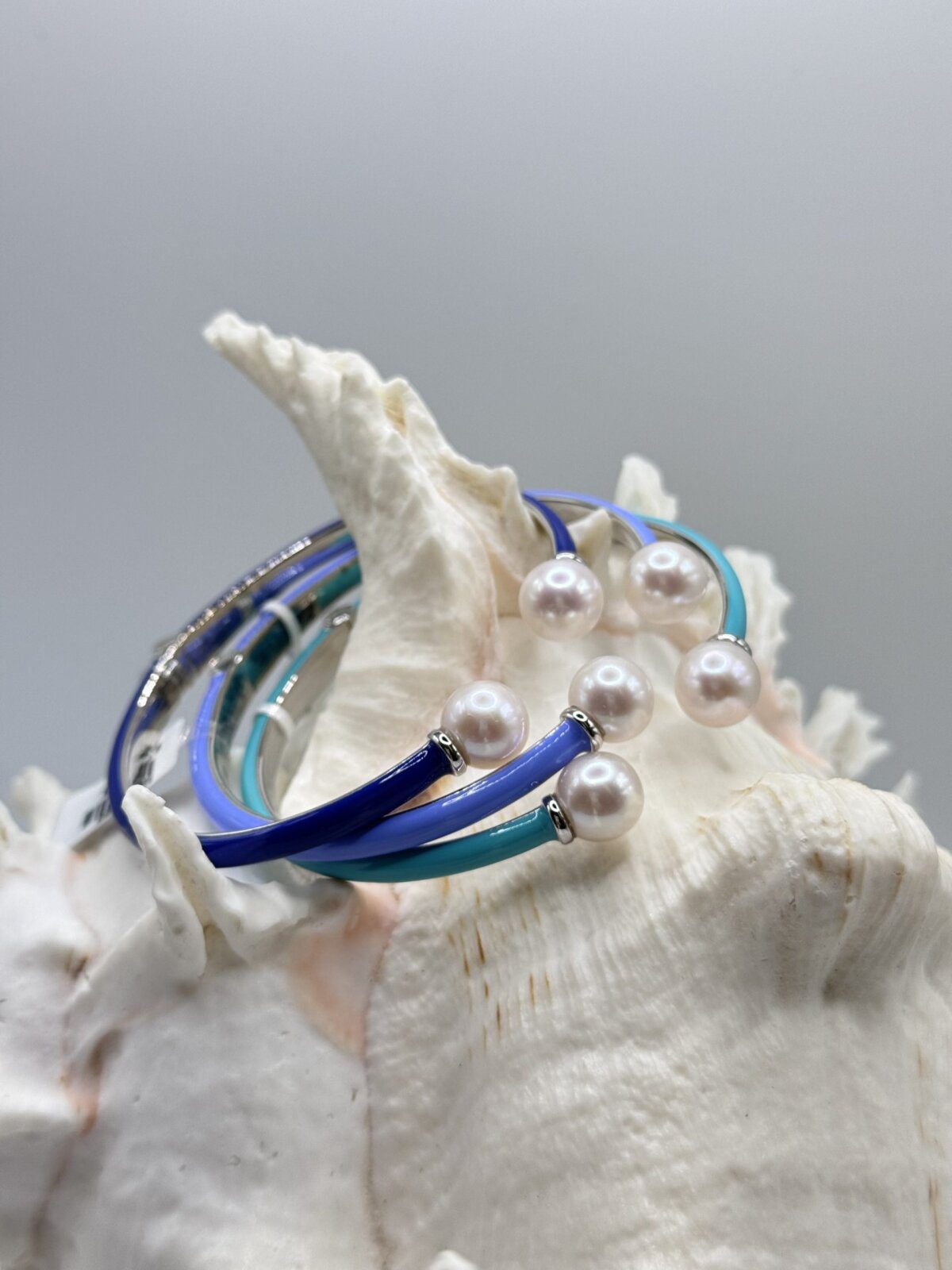 Be the first to review “Sterling Silver Dark Blue Enamel Freshwater Pearl Bracelet 9-10MM | 7in”