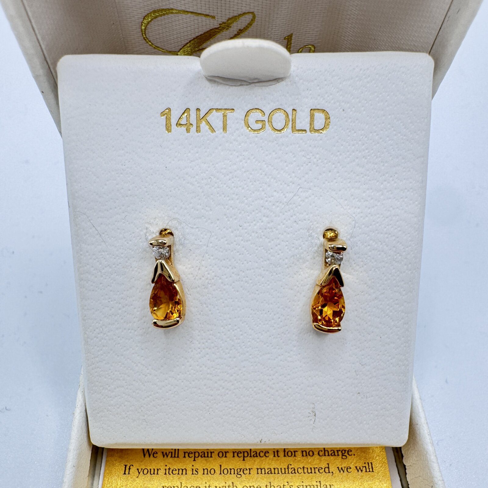 14K Yellow Gold Citrine & Diamond Earrings
