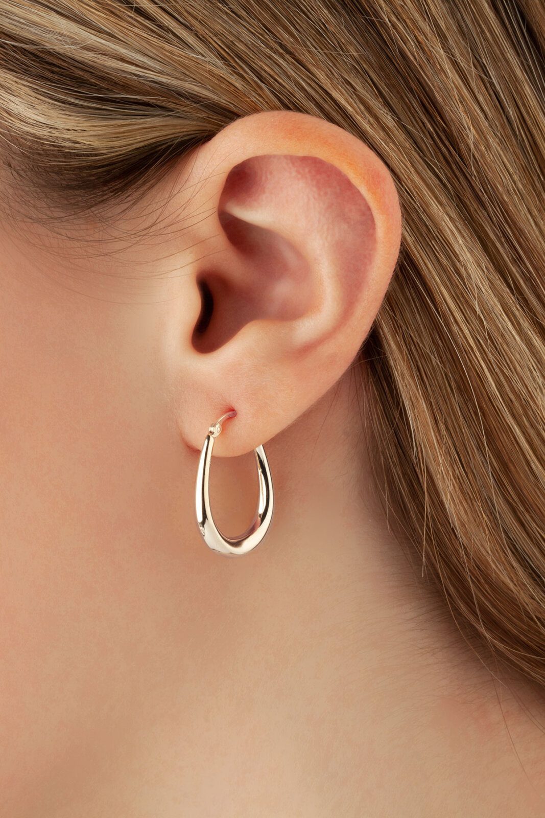 Elegant and modern, these 14K white gold U-shaped hoop earrings feature a sleek, polished finish and a distinctive teardrop silhouette. The secure snap down wire closure ensures a comfortable fit, making them a versatile accessory for both casual and formal wear.