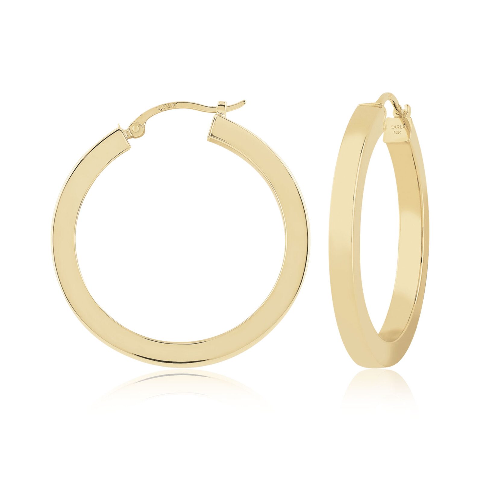 Crafted in radiant 14K yellow gold, these square tube hoop earrings offer a bold yet refined style. Measuring 30MM with a 3MM tube design, they feature a secure snap down wire closure for all-day comfort and wear. Perfect for adding a modern twist to your everyday look or for pairing with elegant evening attire.