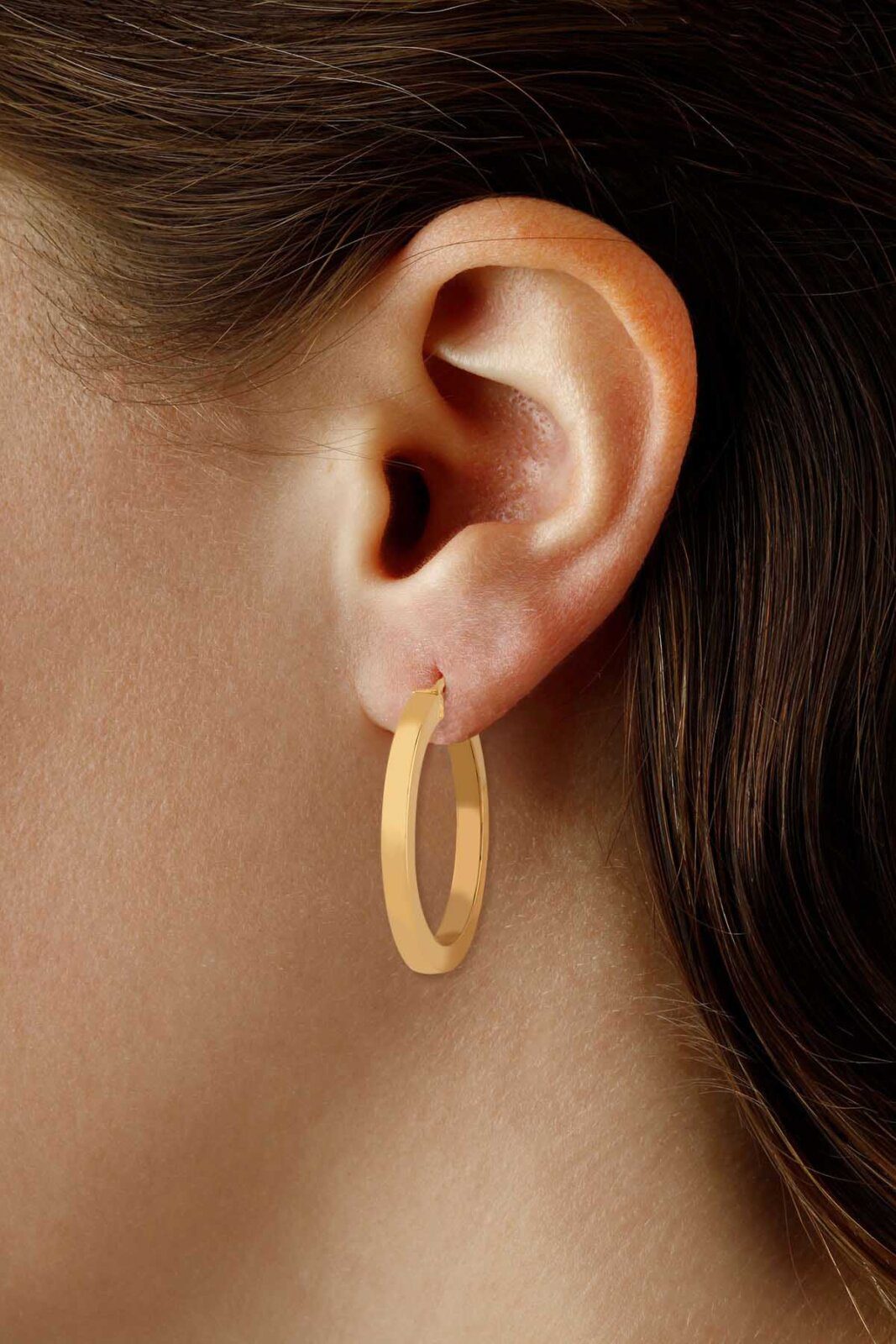 14K Yellow Gold Square Tube Hoop Earrings 3x30MM