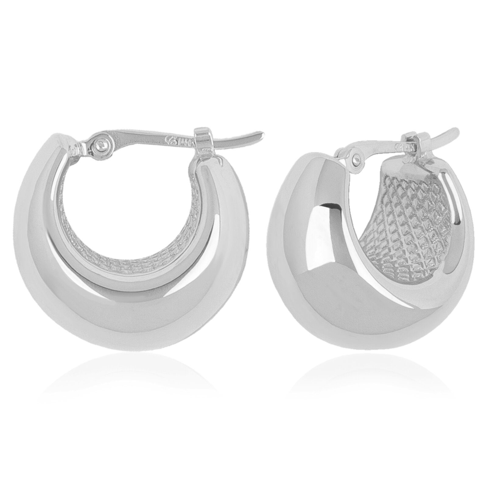 These elegant small puff bottom hoop earrings are crafted from sterling silver, offering a polished shine and a timeless style. Featuring a secure snap down wire closure, they are lightweight yet sturdy, making them ideal for daily wear or special occasions.