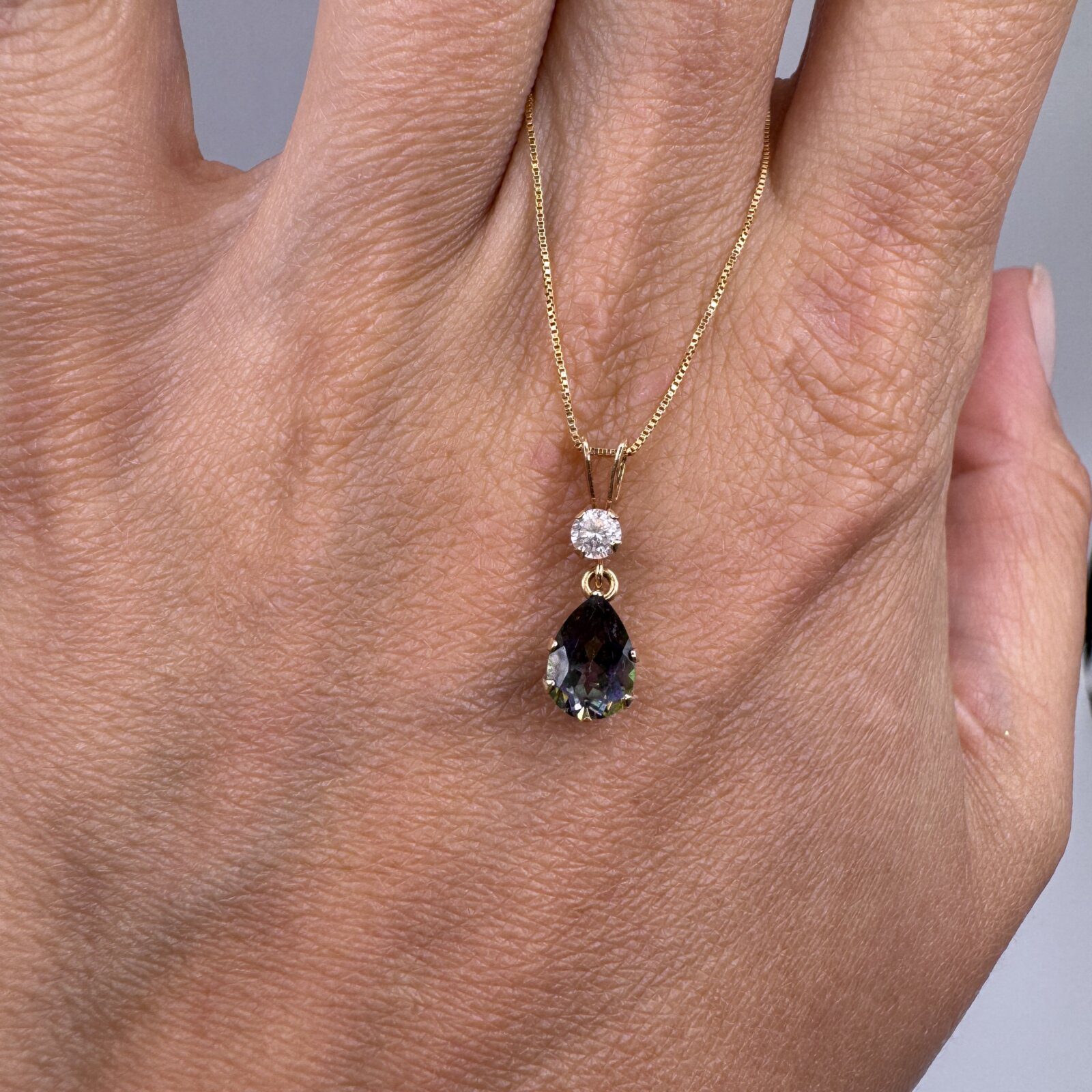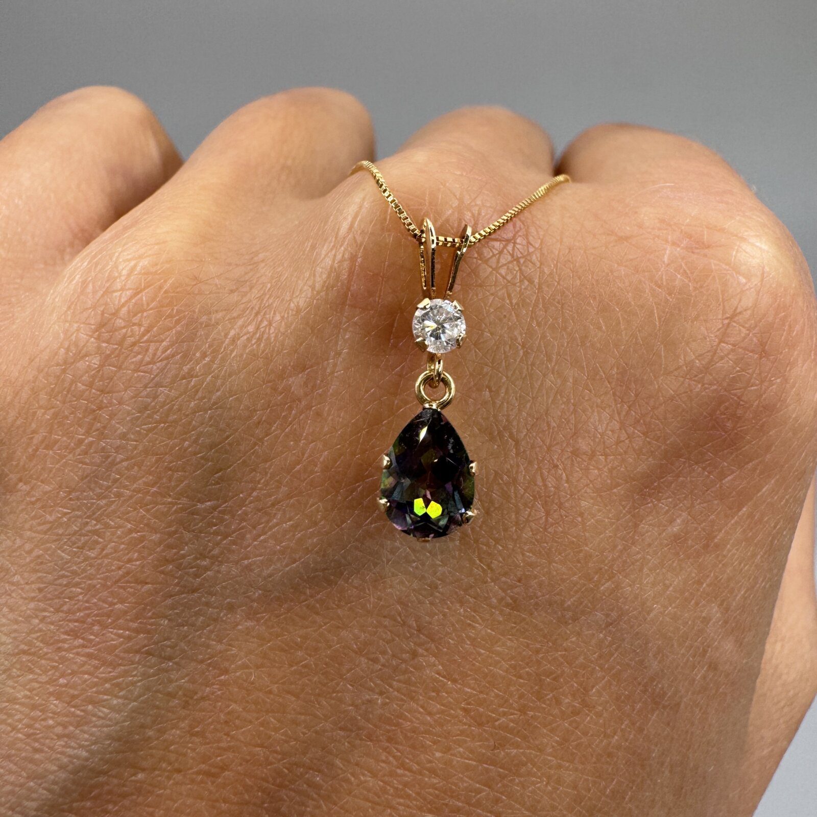 10K Yellow Gold Teardrop Mystic Topaz Pendant