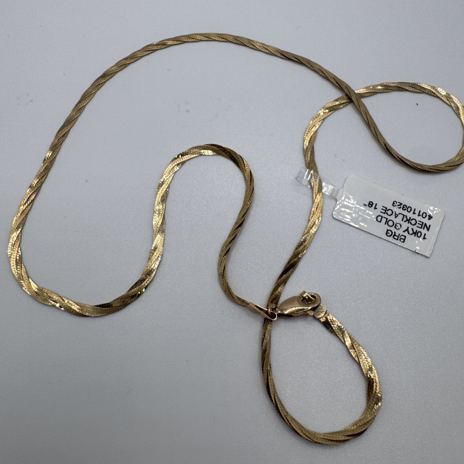 This 18″ necklace in 10K yellow gold features a delicate twist design, adding subtle texture and timeless elegance to any look.