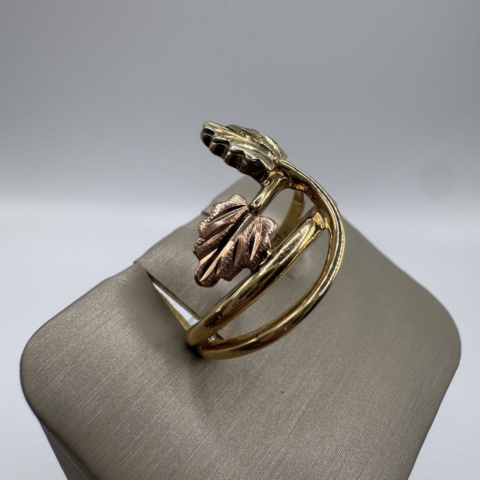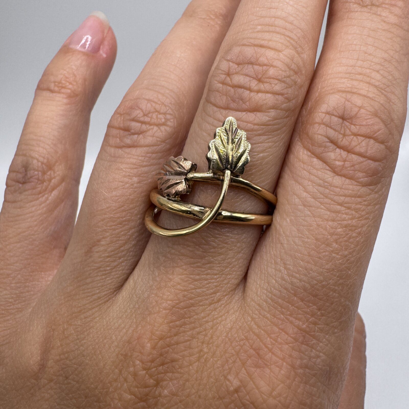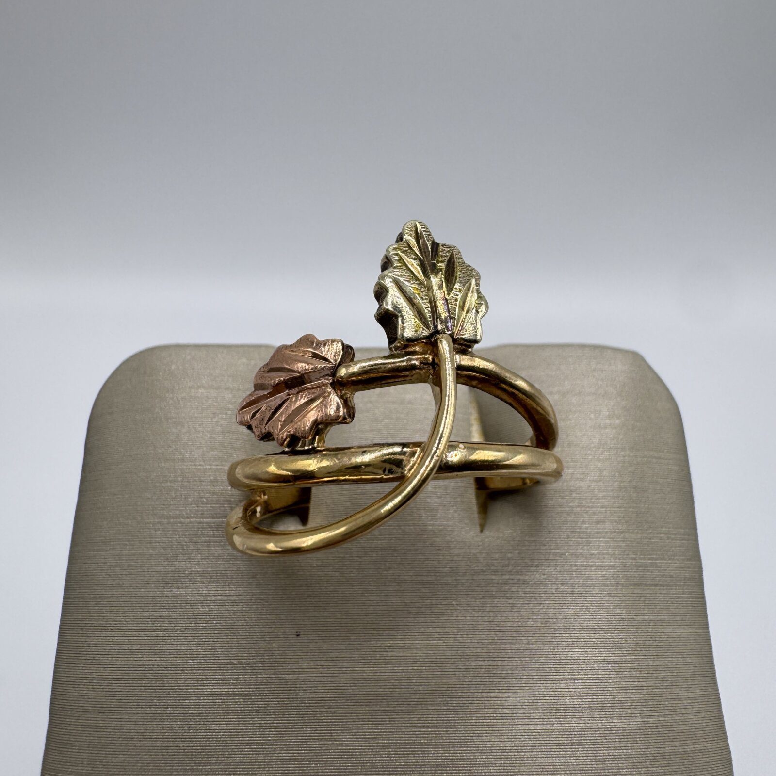 Celebrate nature’s elegance with this beautifully crafted 10K yellow and rose gold Black Hills ring. Featuring the signature two-tone leaf motif, this timeless piece weighs 4.06 grams and is sized at 8. A classic design symbolizing growth and harmony, perfect for everyday wear or as a meaningful gift.