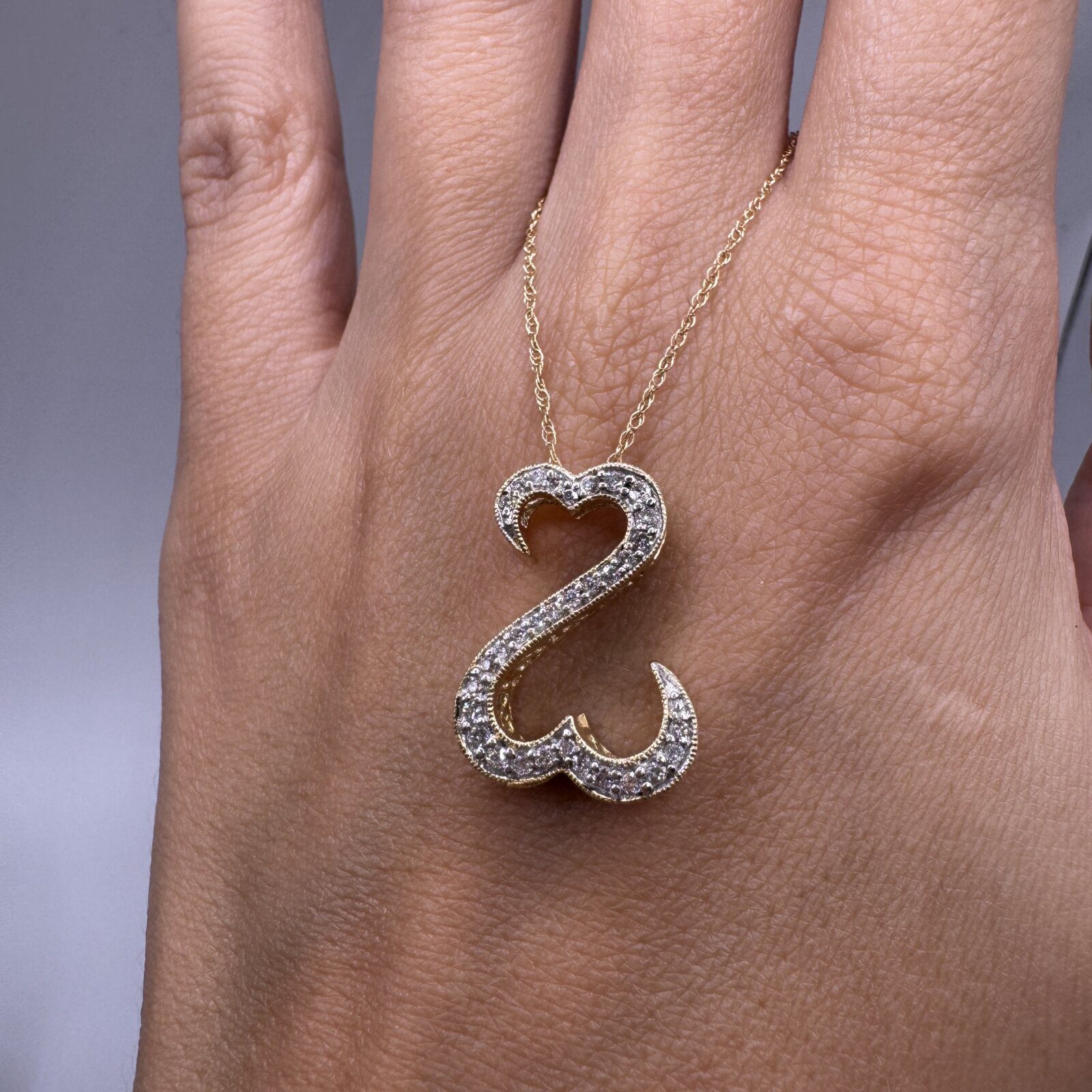 Be the first to review “14k Yellow Gold Double Heart Pendant with Diamonds, 2.32 g, 20 mm”