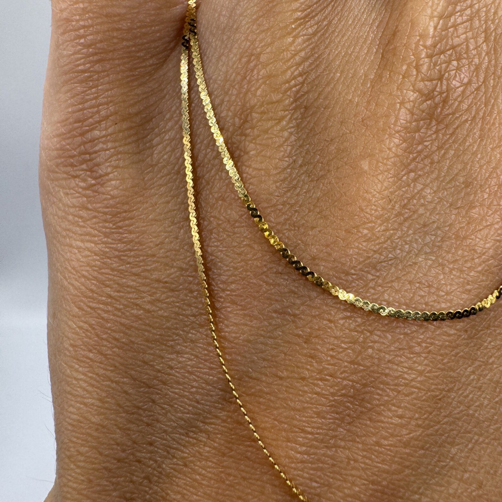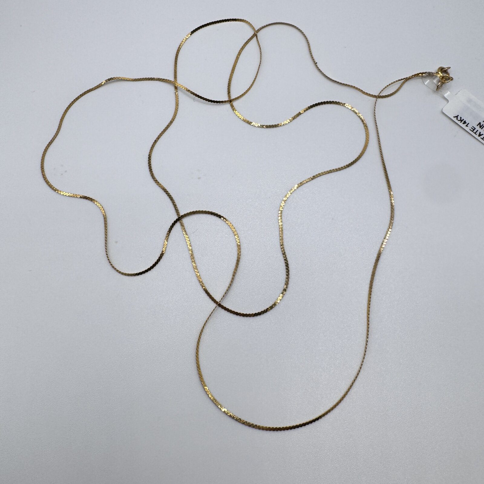 This 28″ long serpentine chain in 14K yellow gold (1.60g) features a smooth, flowing design — an elegant and versatile accessory for any style.