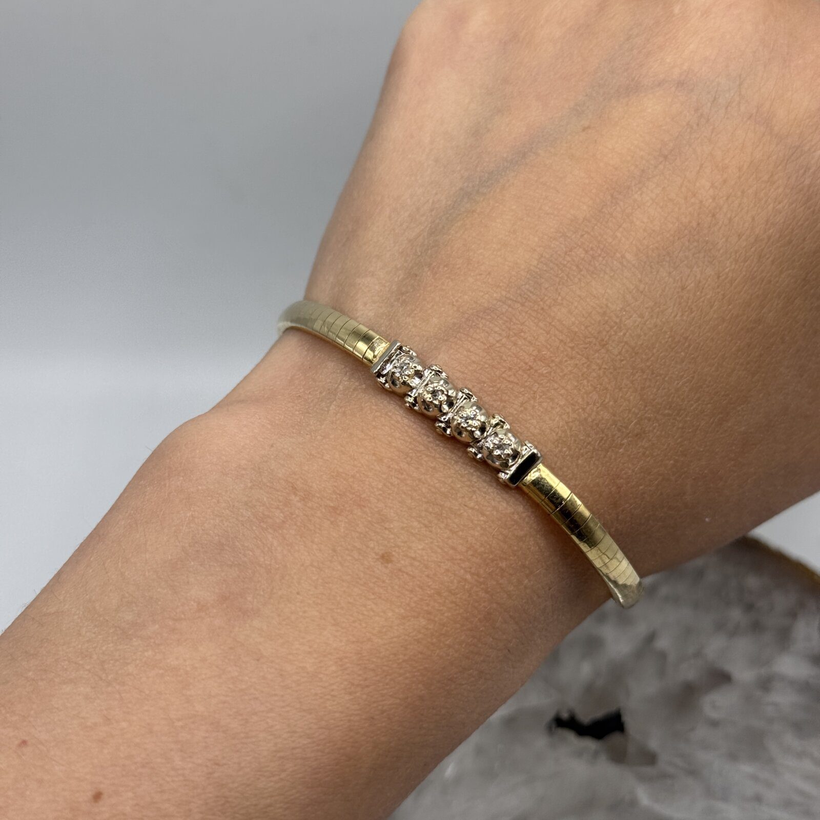 14K Yellow Gold Omega & Diamond Bracelet – 4mm, 7″, 11.72g