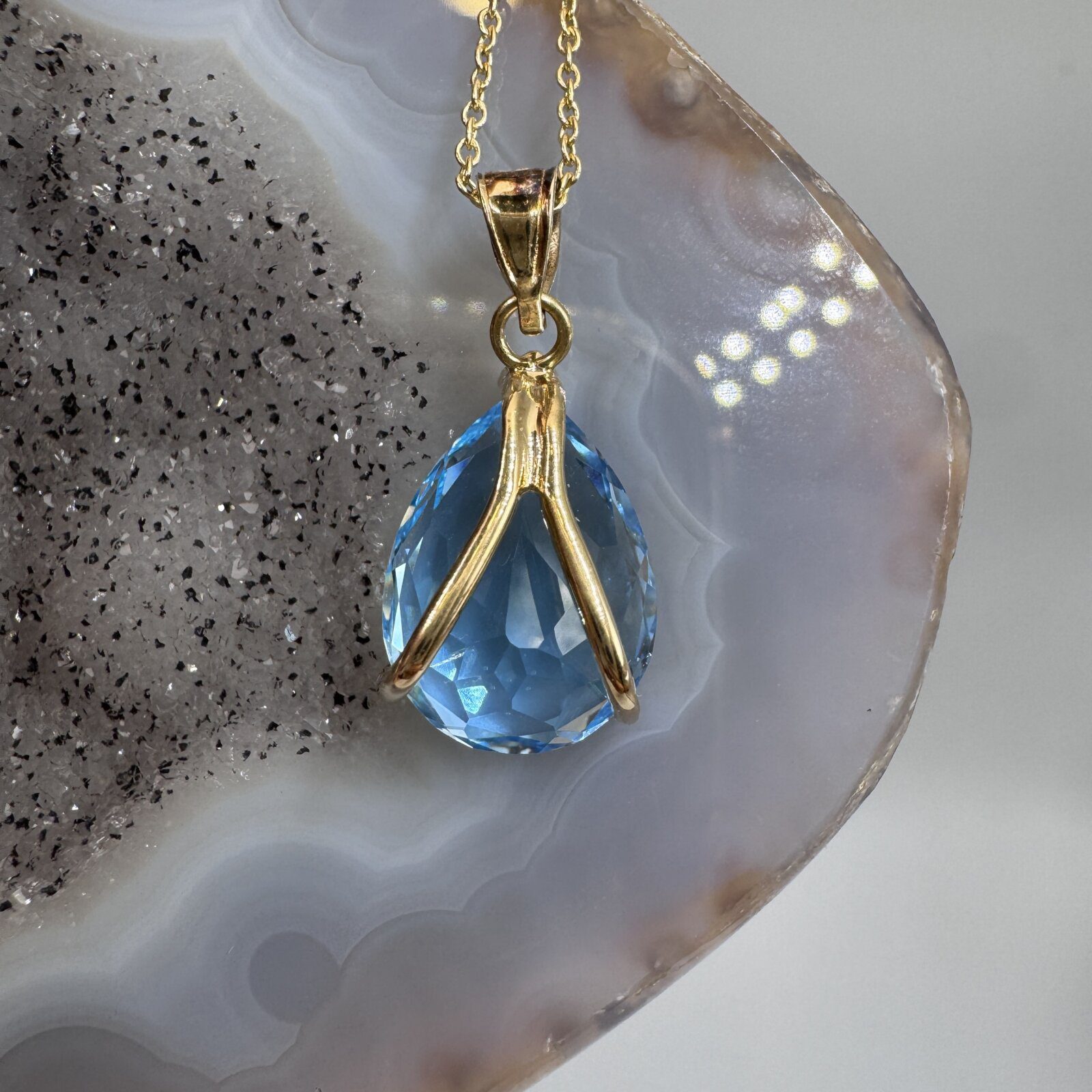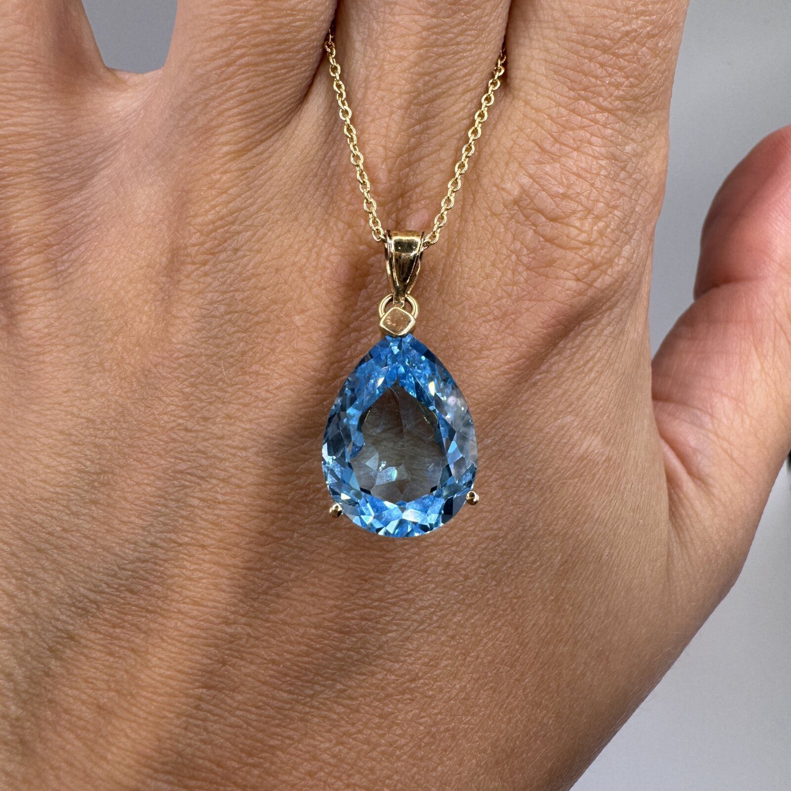 Be the first to review “14K Yellow Gold Pear Shape Swiss Blue Topaz 10ct Pendant”