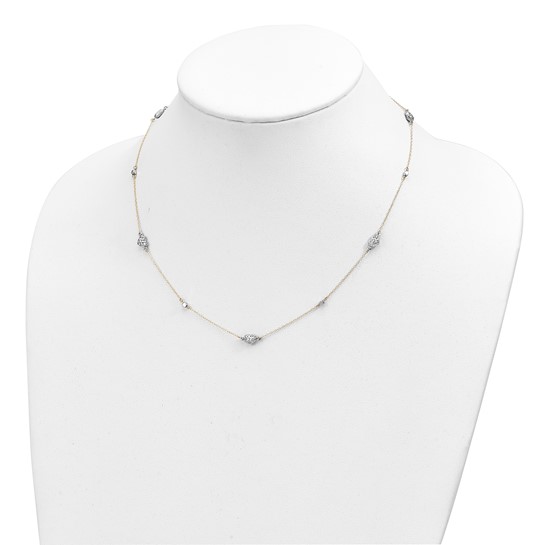 Delicate and feminine 14K two-tone gold necklace featuring polished and diamond-cut puffed heart accents paired with subtle bead details along a fine chain. The combination of yellow and white gold creates a beautiful contrast, adding dimension and sparkle to the design.