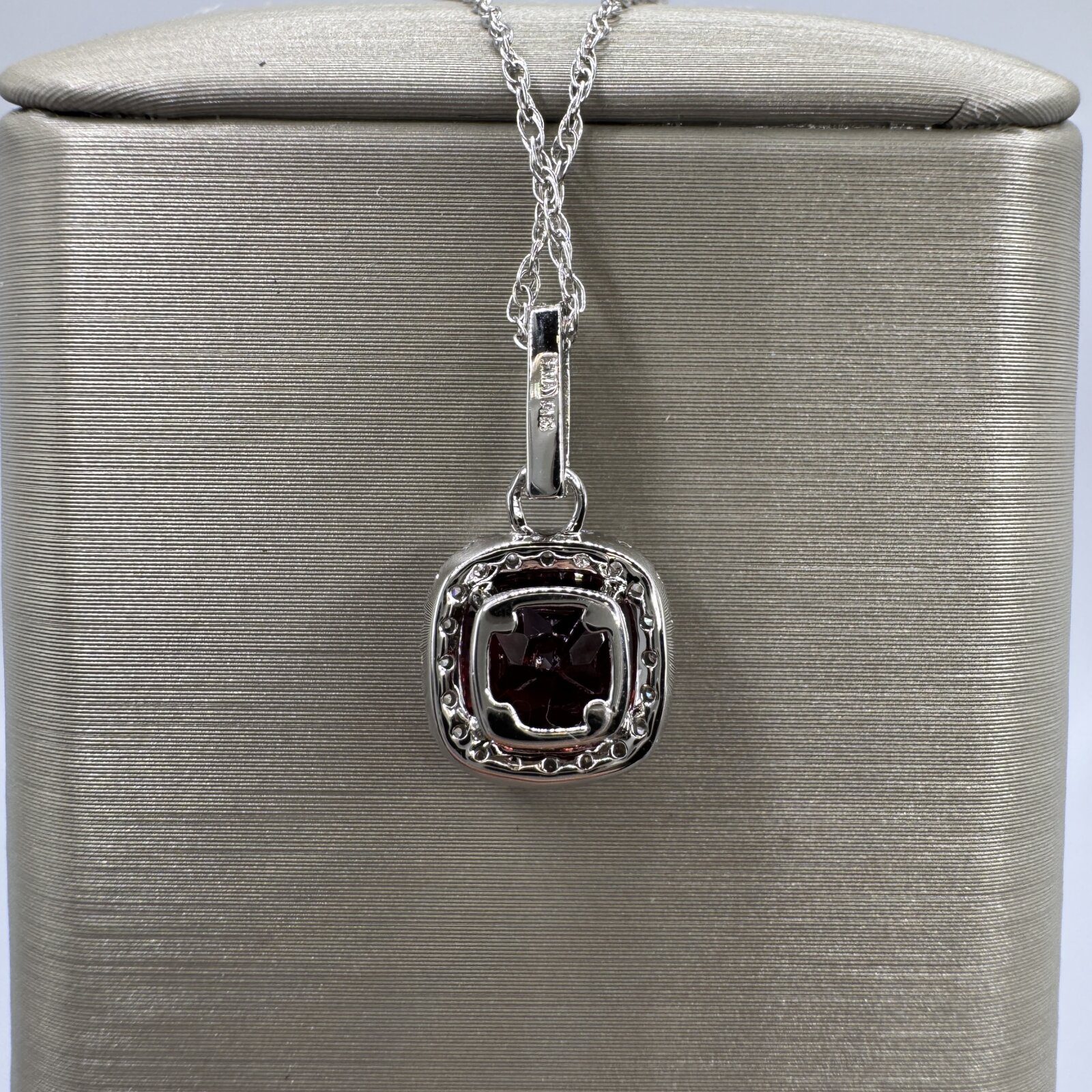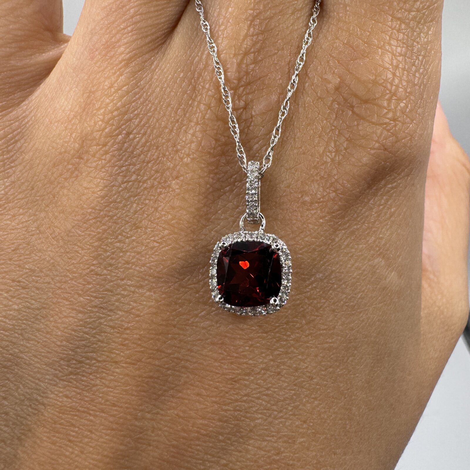 Be the first to review “14K White Gold Garnet 1.84ct & Dia .20 Necklace 18″”