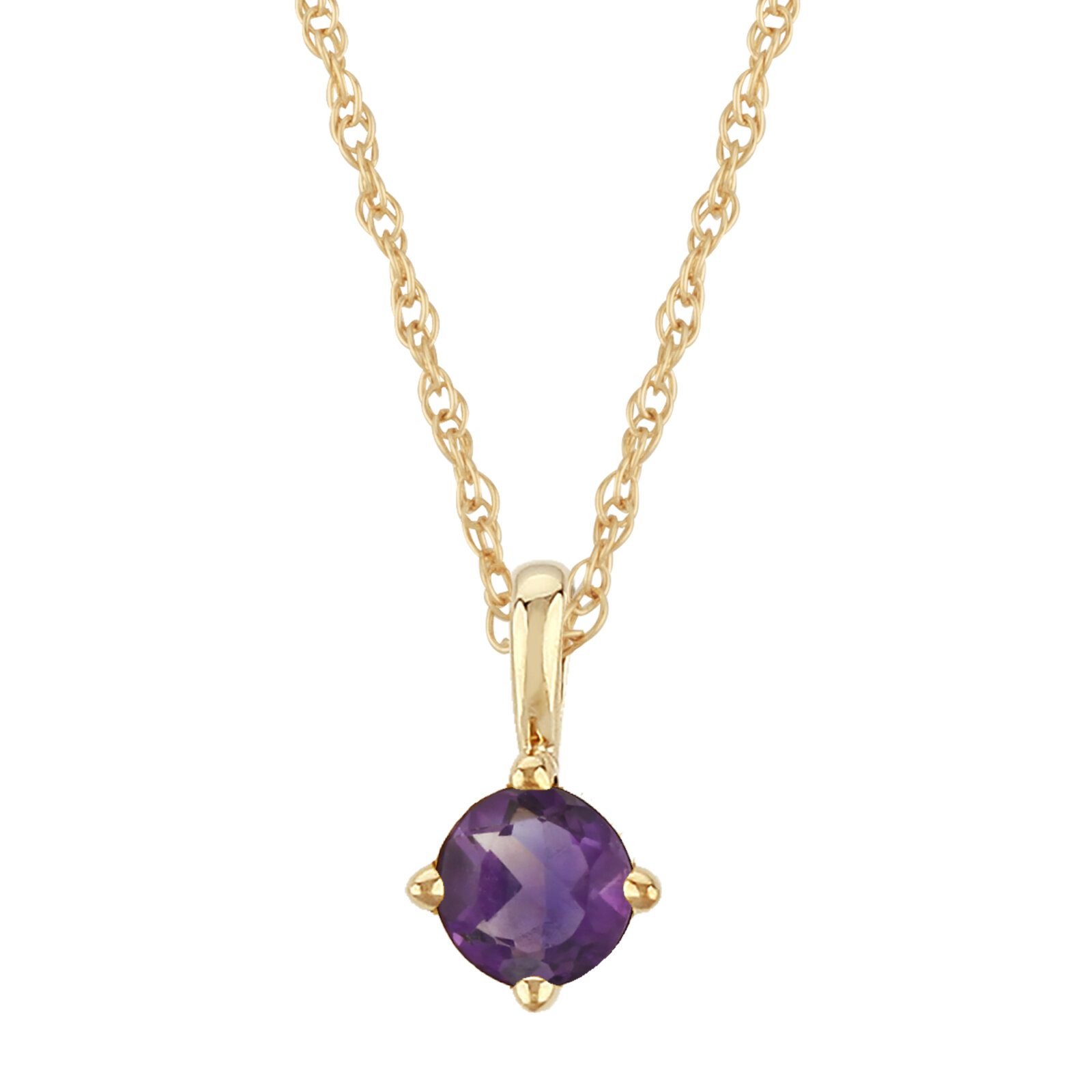 This pendant features a genuine 4MM amethyst set in 14K yellow gold, gracefully suspended from an 18″ chain. With its rich purple hue, amethyst is the birthstone for February, symbolizing peace, clarity, and protection. Secured with a spring ring clasp, this elegant design is a timeless accessory and a meaningful gift choice.