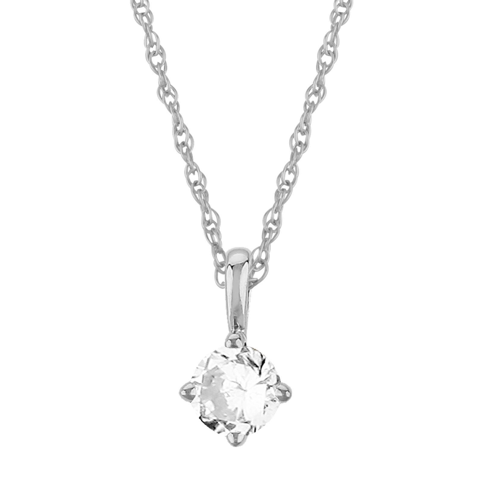14K White Gold 4MM White Topaz Pendant 18″