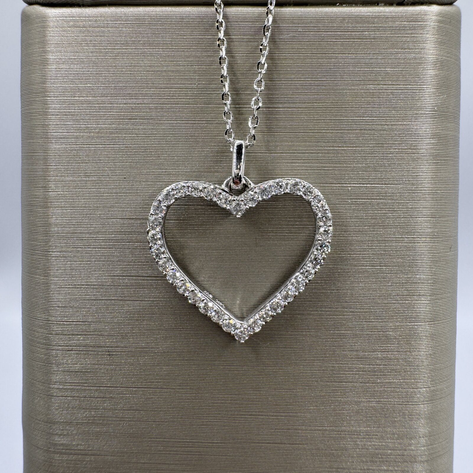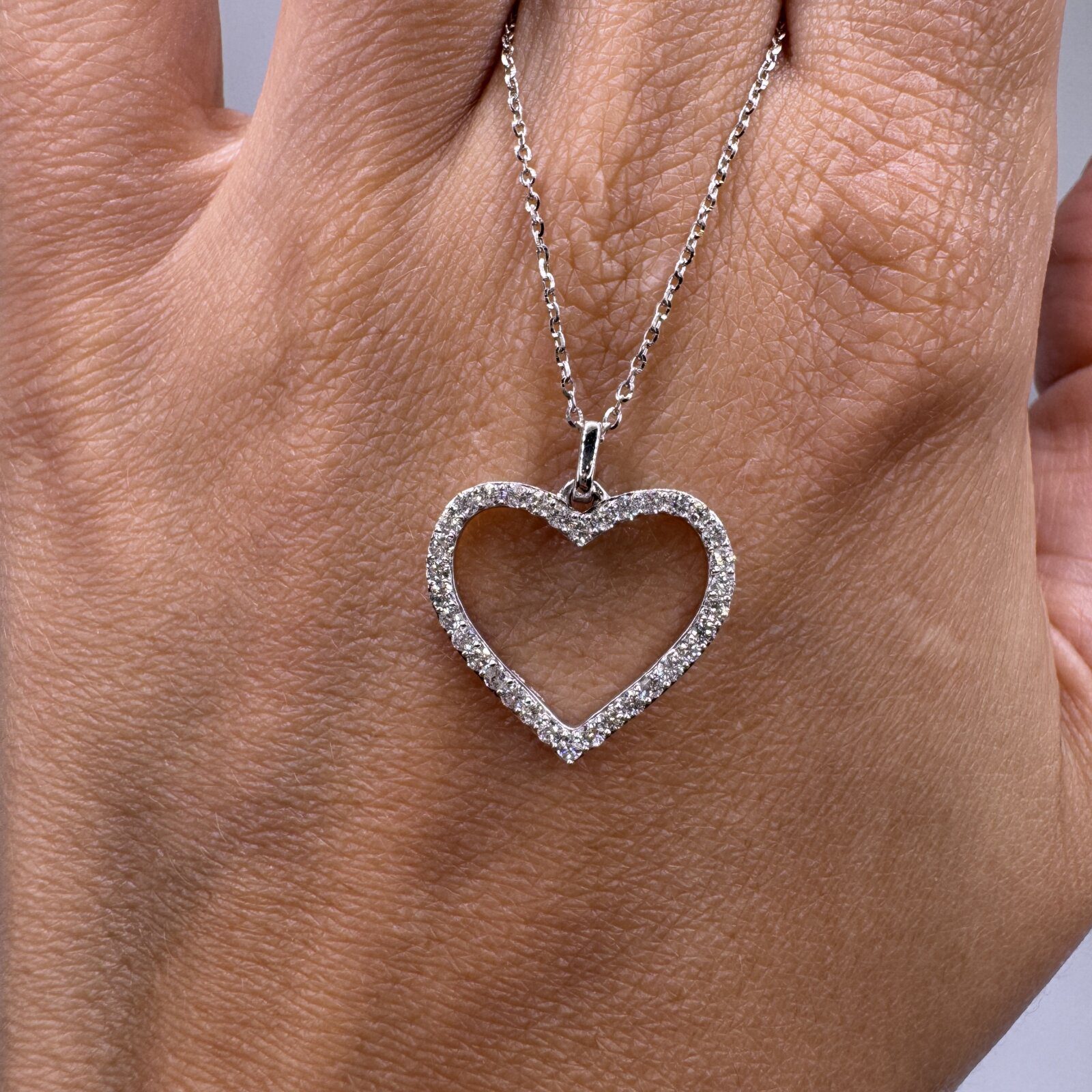 A romantic favorite — this open heart necklace in 14K white gold is adorned with 0.33 ct tw of shimmering diamonds, creating a delicate and timeless symbol of love and elegance.