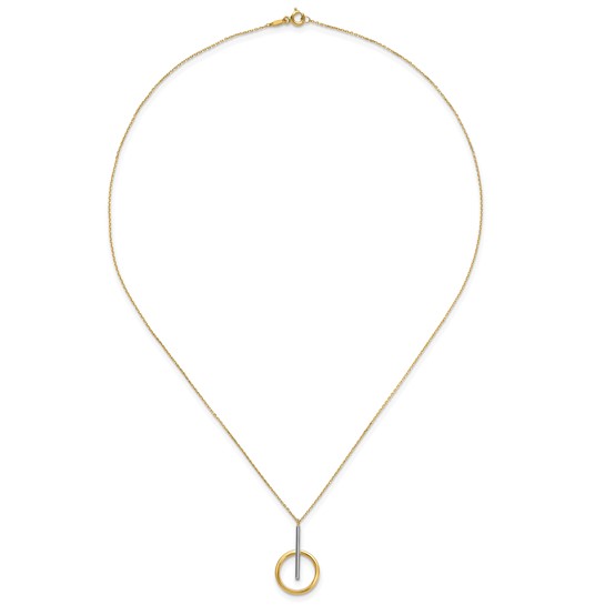 Leslie’s 10K Yellow Gold & White Rhodium Bar with Circle Pendant Necklace, 18″