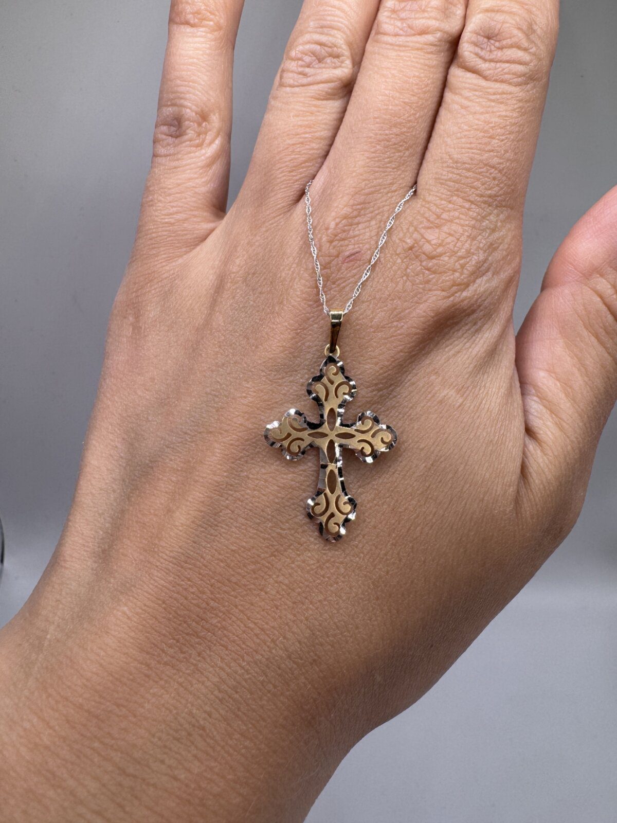 Be the first to review “Cross Pendant Filigree 14k Two-Tone Gold”