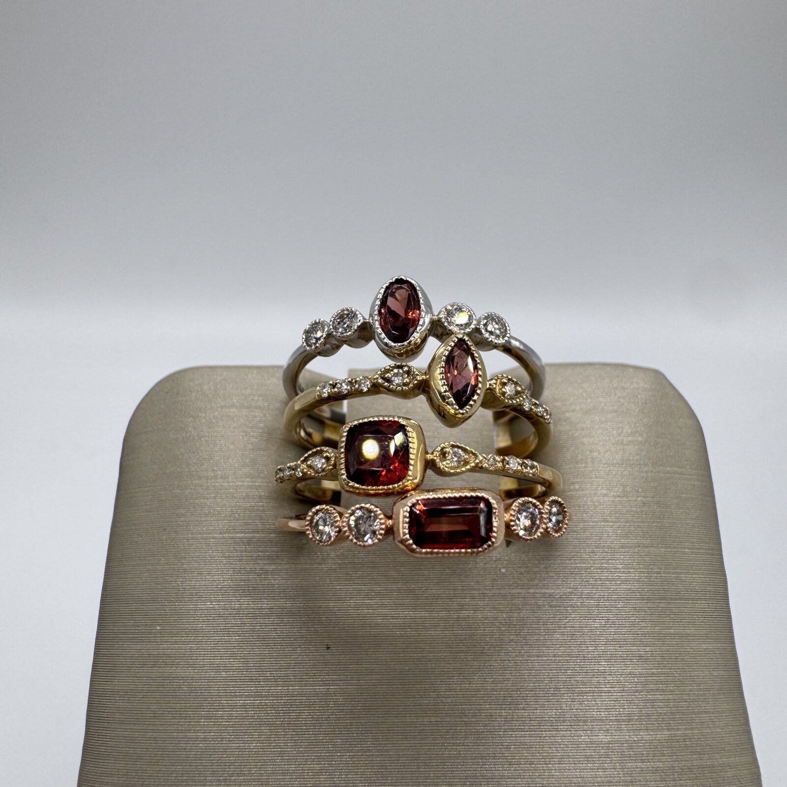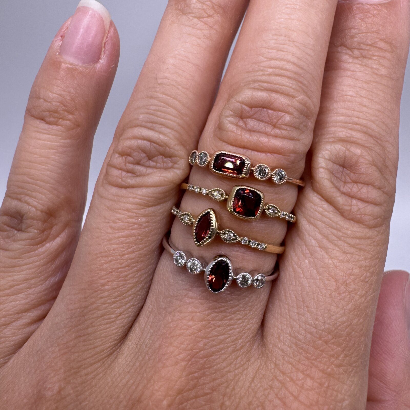 Be the first to review “14K Gold Garnet and Diamond Stackable Bezel Ring”