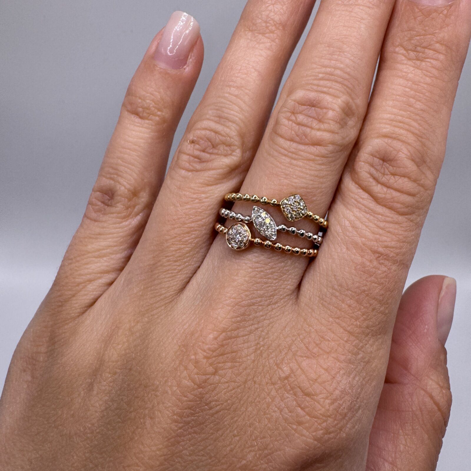 Add to WishlistRemove from Wishlist Add to Wishlist HomeShopRings14K Tri-Color Diamond 0.18 ct Stack Ring Sale! 14K Tri-Color Diamond 0.18 ct Stack Ring$3,160.00 Original price was: $3,160.00.$2,529.00Current price is: $2,529.00. 14K Tri-Color Diamond 0.18 ct Stack Ring Metal: 14KT Gold Total Diamond Weight: 0.18 ct Stone Shape: Round Stone Type: Natural Diamond Stone Cut: Brilliant / Full Additional information Metal Type Yellow Gold, Rose Gold, White Gold Ring Size 7 1 in stock 14K Tri-Color Diamond 0.18 ct Stack Ring quantity Add to Cart SKU: 100-10319 Category: Rings Product ID: 34035 WILKERSON Description Brand Reviews (0) Description 14K Tri-Color Diamond 0.18 ct Stack Ring Brand WILKERSON Reviews There are no reviews yet. Be the first to review “14K Tri-Color Diamond 0.18 ct Stack Ring” Cancel replyYour email address will not be published. Required fields are marked *Name * Email * Save my name, email, and website in this browser for the next time I comment. Your rating * Rate… Perfect Good Average Not that bad Very poor Your review * I agree that my submitted data is being collected and stored. Related products Sale! Add to WishlistRemove from Wishlist Add to Wishlist Wedding/Anniversary Ring in White Gold With Diamonds 1.00 ct $19,482.00 Original price was: $19,482.00.$11,638.00Current price is: $11,638.00. Add to Cart Sale! Add to WishlistRemove from Wishlist Add to Wishlist Wedding/Anniversary Ring in Yellow Gold With Diamonds 0.50 ct $7,980.00 Original price was: $7,980.00.$5,598.00Current price is: $5,598.00. Add to Cart Sale! Add to WishlistRemove from Wishlist Add to Wishlist Diamond Ring in Yellow Gold $1,488.00 Original price was: $1,488.00.$1,038.00Current price is: $1,038.00. Add to Cart Sale! Add to WishlistRemove from Wishlist Add to Wishlist Wedding / Stackable / Anniversary Ruby Ring in Yellow Gold $1,404.00 Original price was: $1,404.00.$978.00Current price is: $978.00. Add to Cart