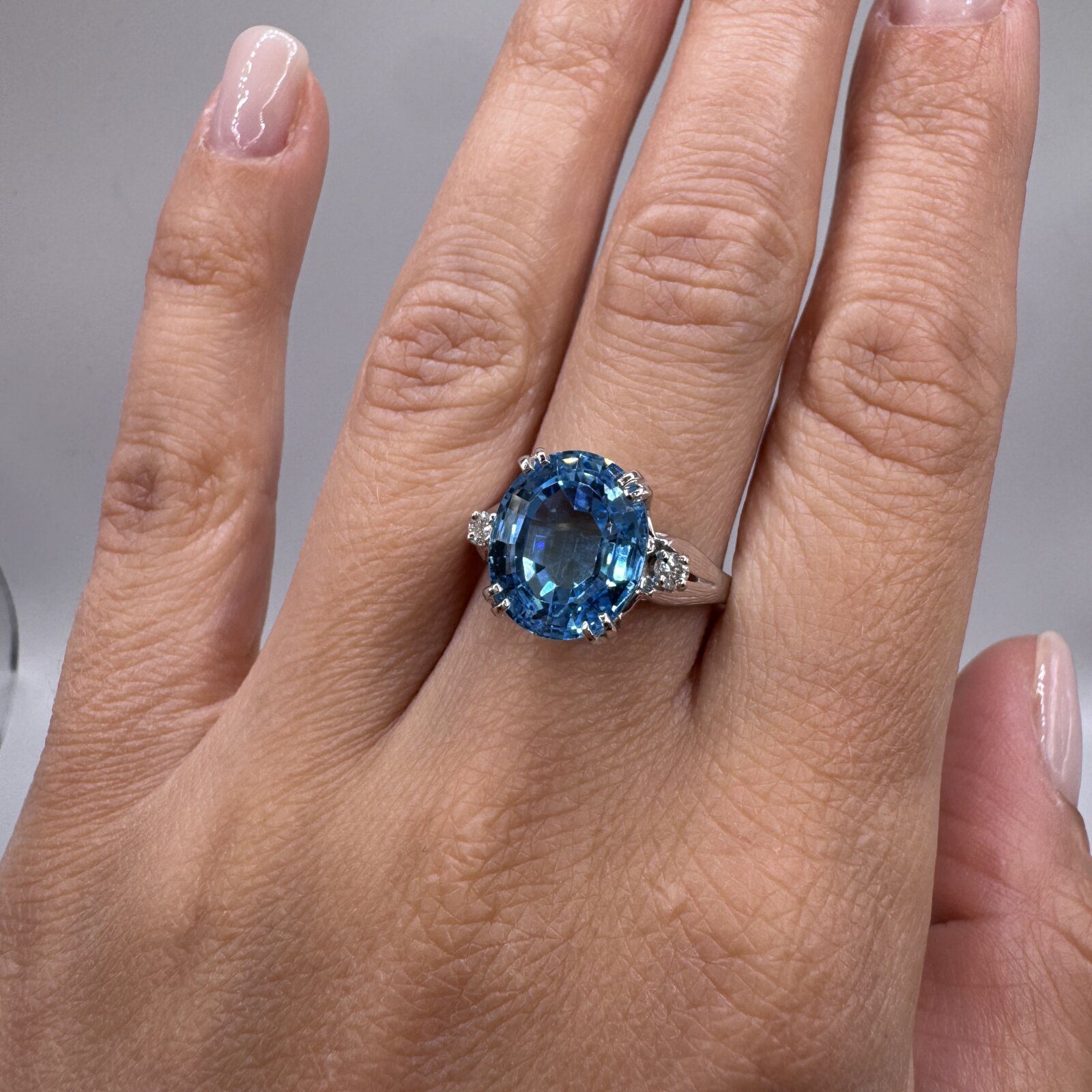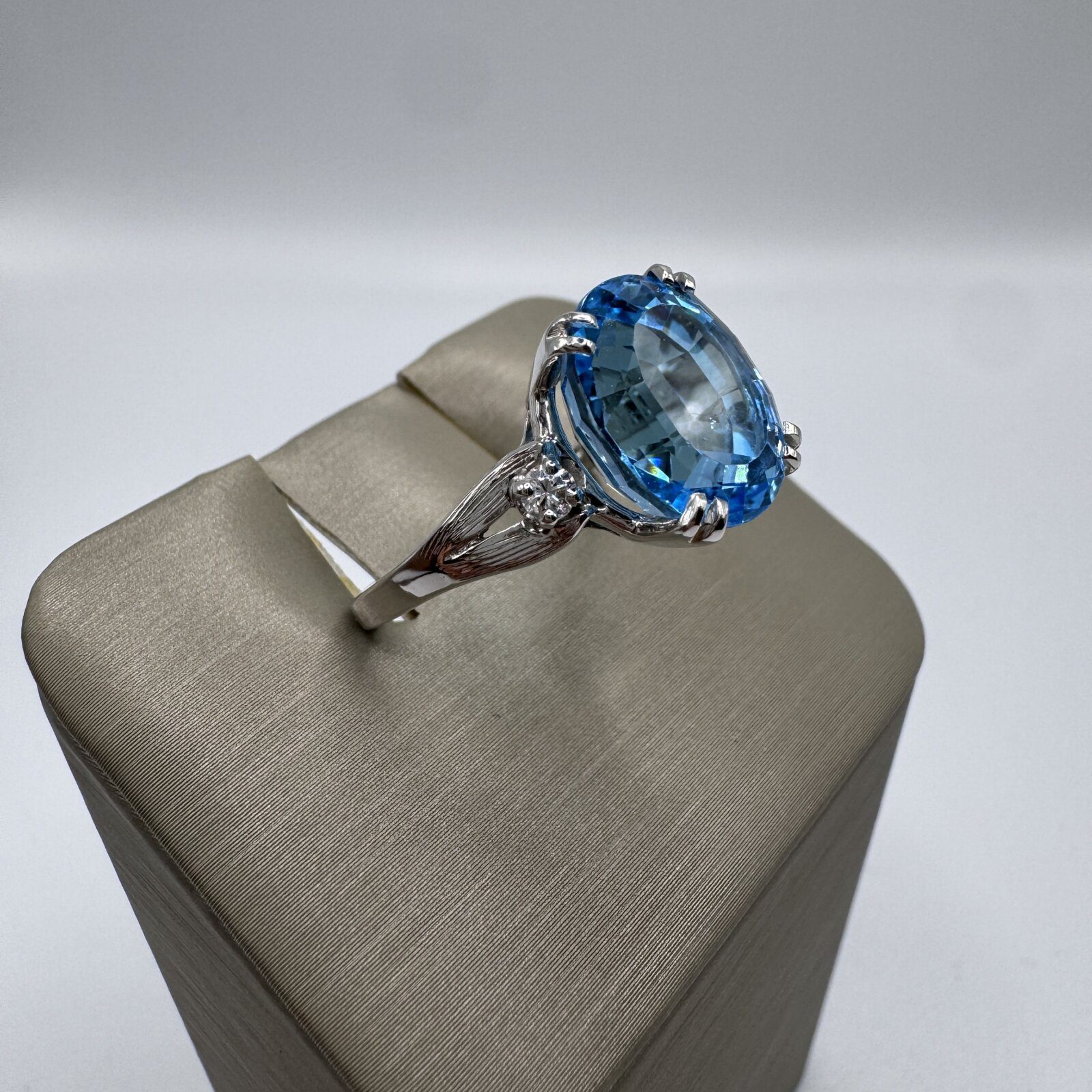 Be the first to review “14k White Gold Blue Oval Topaz 3ct Diamond 0.06ctw Ring 8.5”