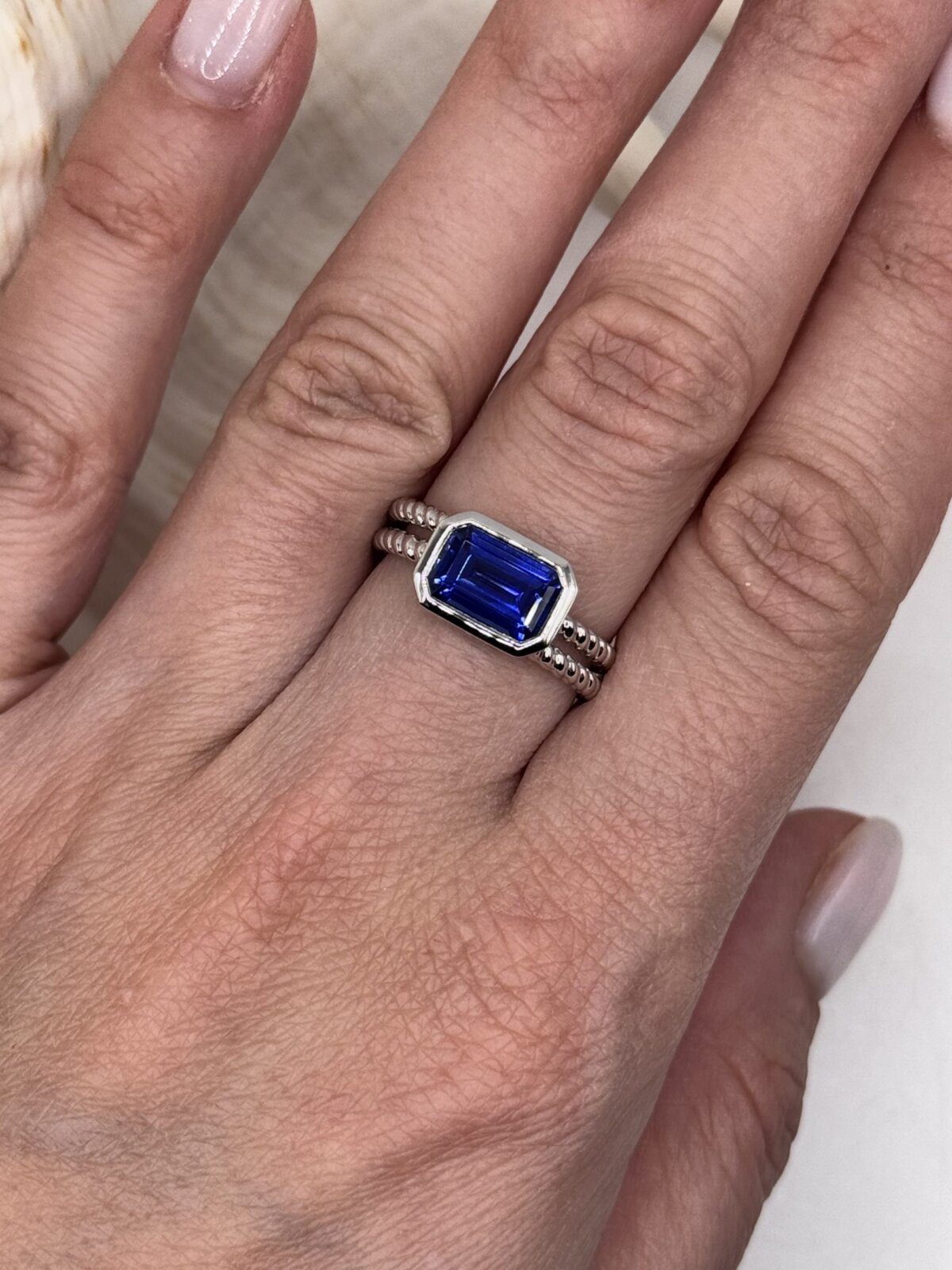 Gemstone: 9x6mm Emerald Cut Chatham Lab Grown Blue Sapphire