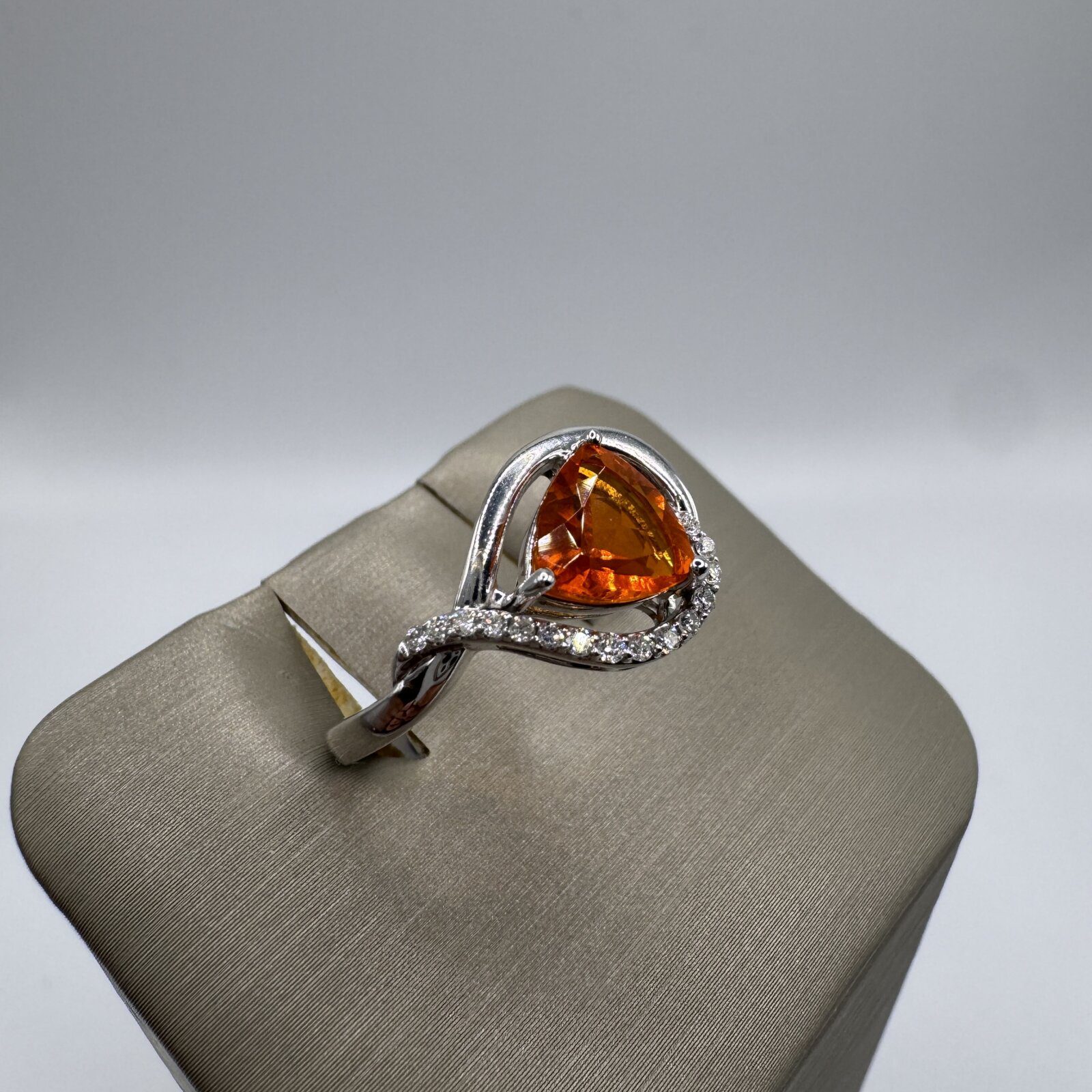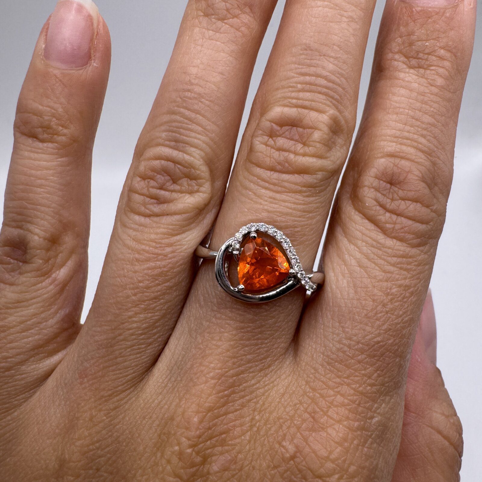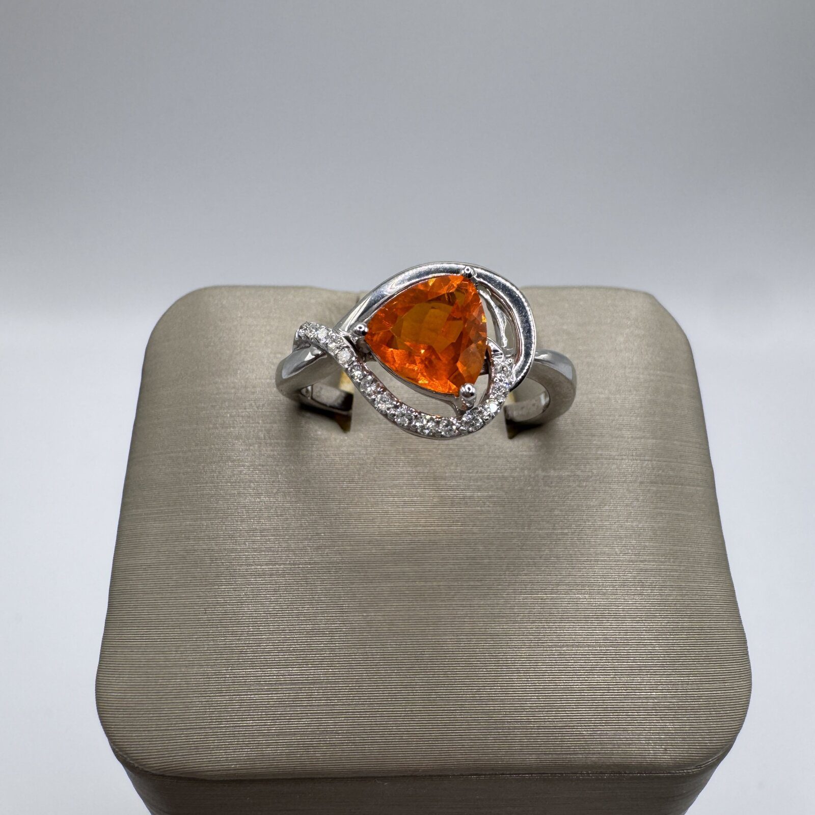 This 14K white gold ring (size 6.5) features a warm 0.73 ct citrine accented by a subtle 0.01 ct diamond — a delicate touch of golden elegance.
