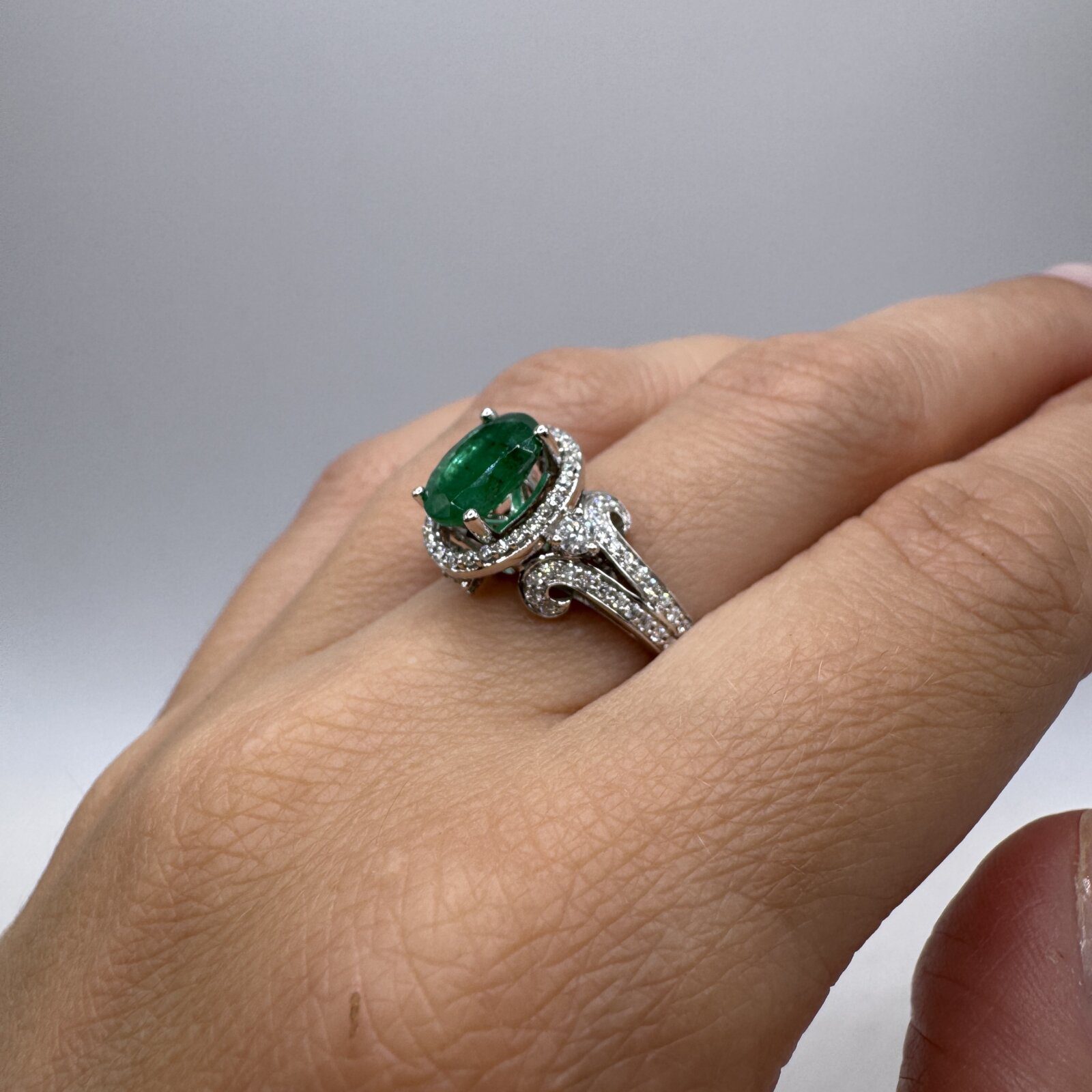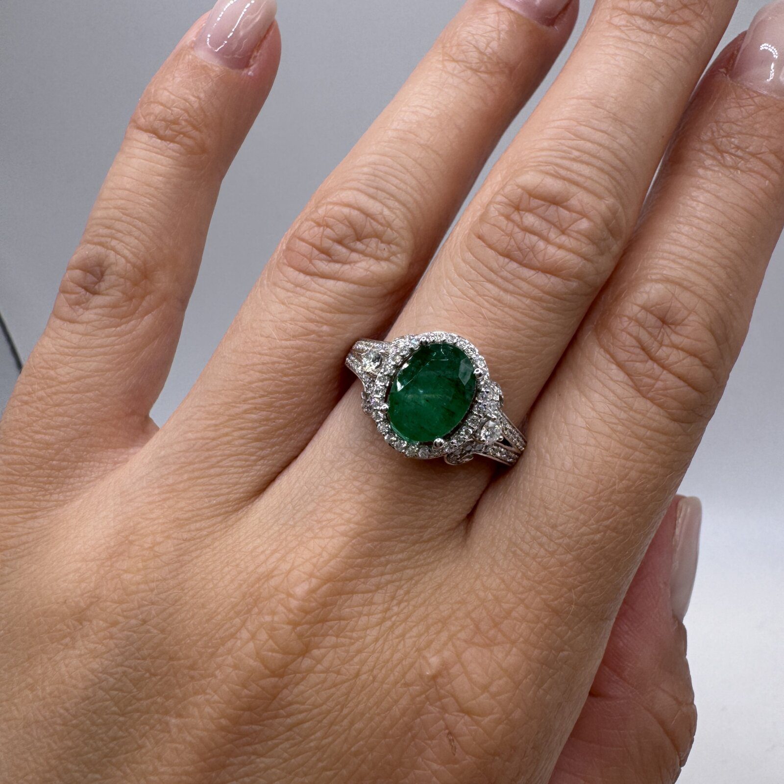 14k White Gold Natural Emerald 1.75ct Diamond .50ct Ring. Emerald, the birthstone for May.