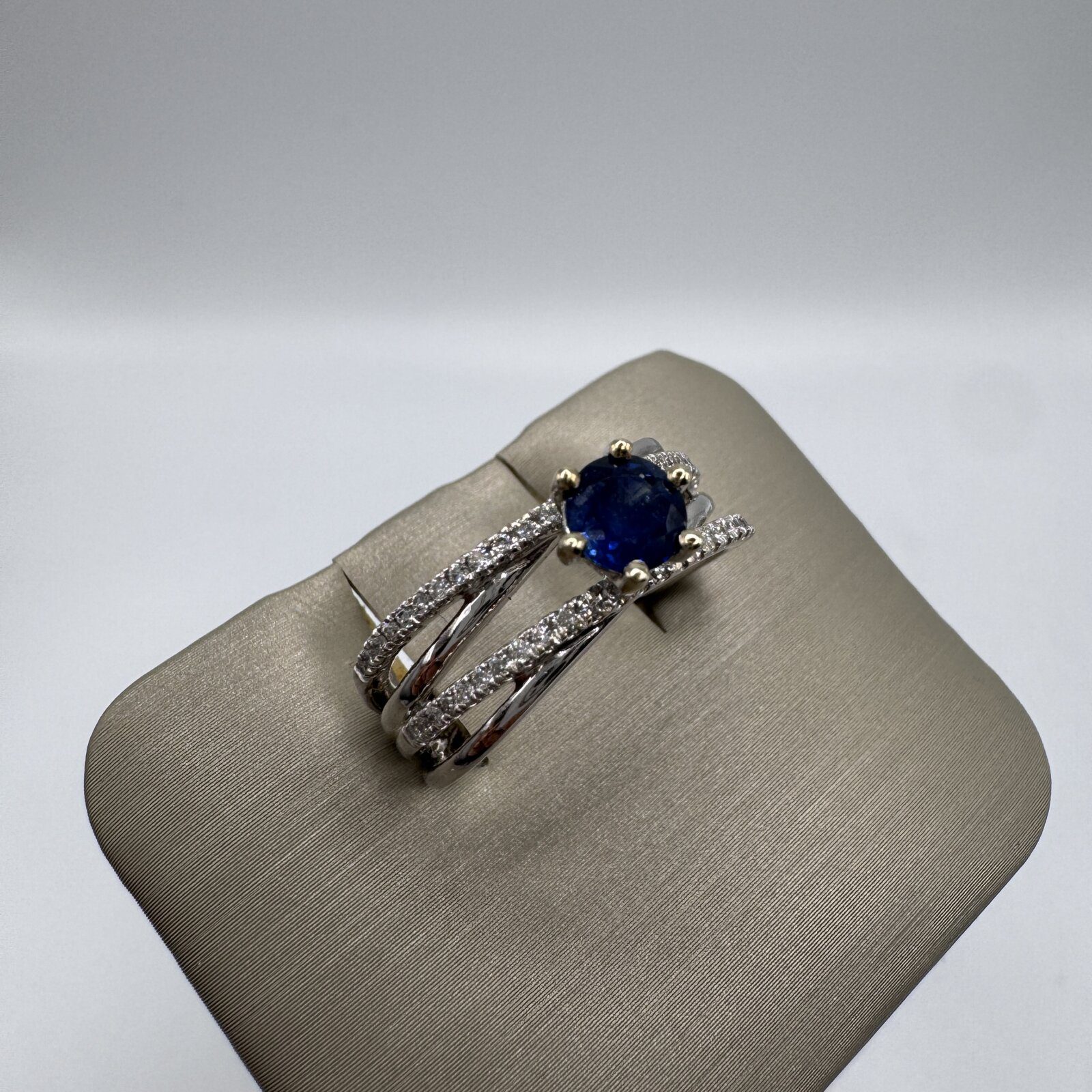 14K White Gold Sapphire 0.48ct and Dia 0.20ct Ring 6s