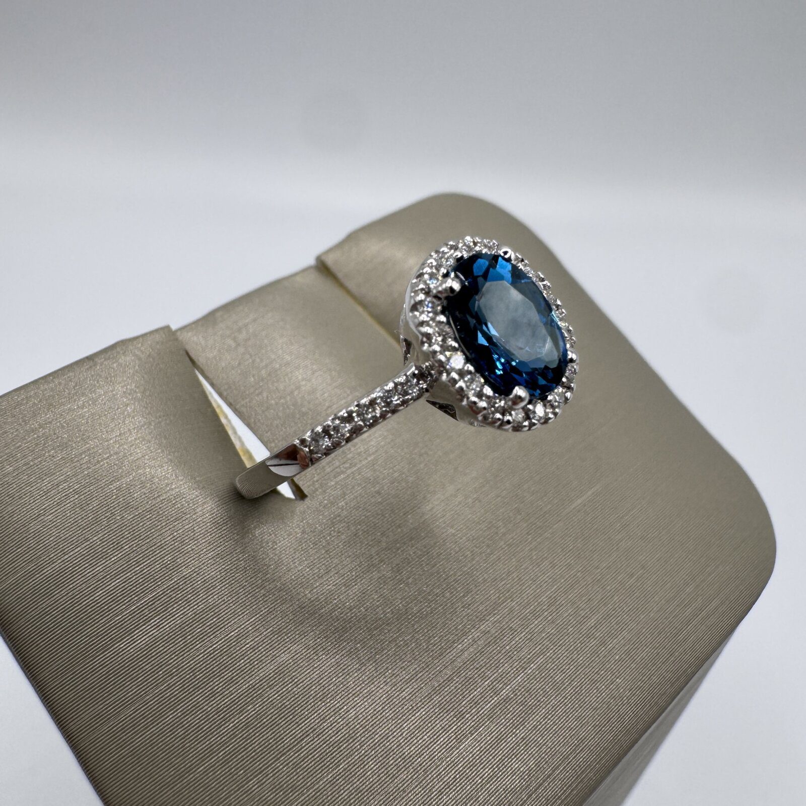 14kt White Gold Oval London Blue Topaz 0.88ct Diamond 0.13ctw Ring