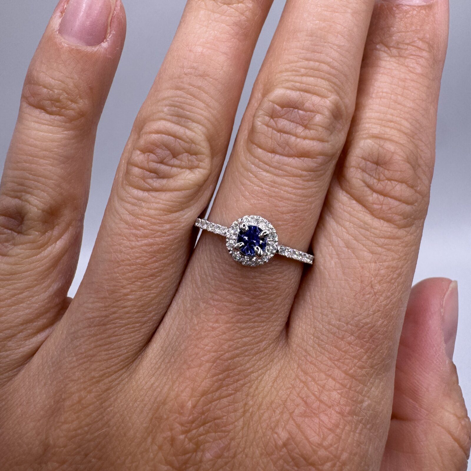 Be the first to review “18K White Gold Tanzanite Halo 0.25ct and Dia 0.23ct Ring 7”