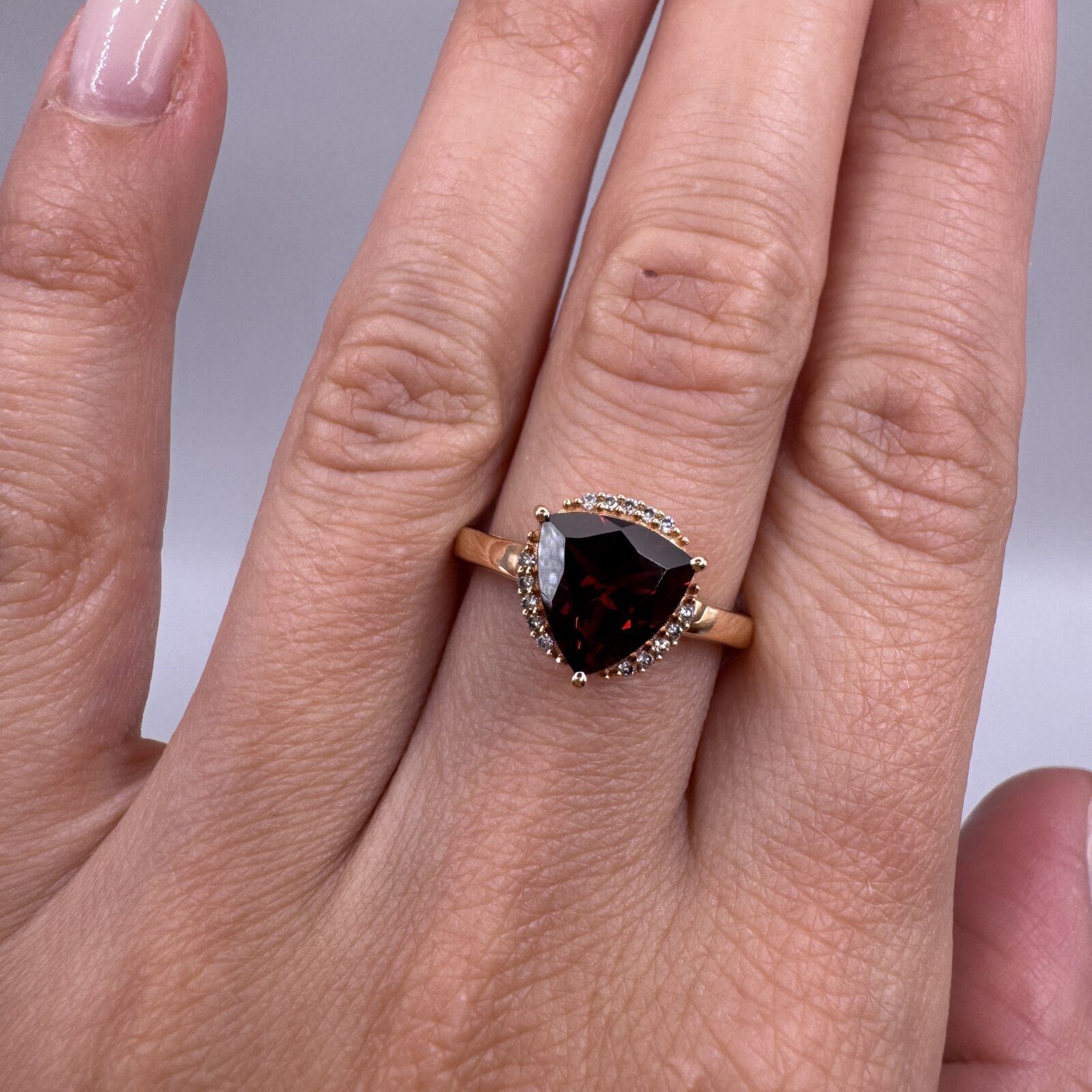 Be the first to review “18kt Rose Gold Garnet 2.66ct Diamond 0.07ctw Ring 7”