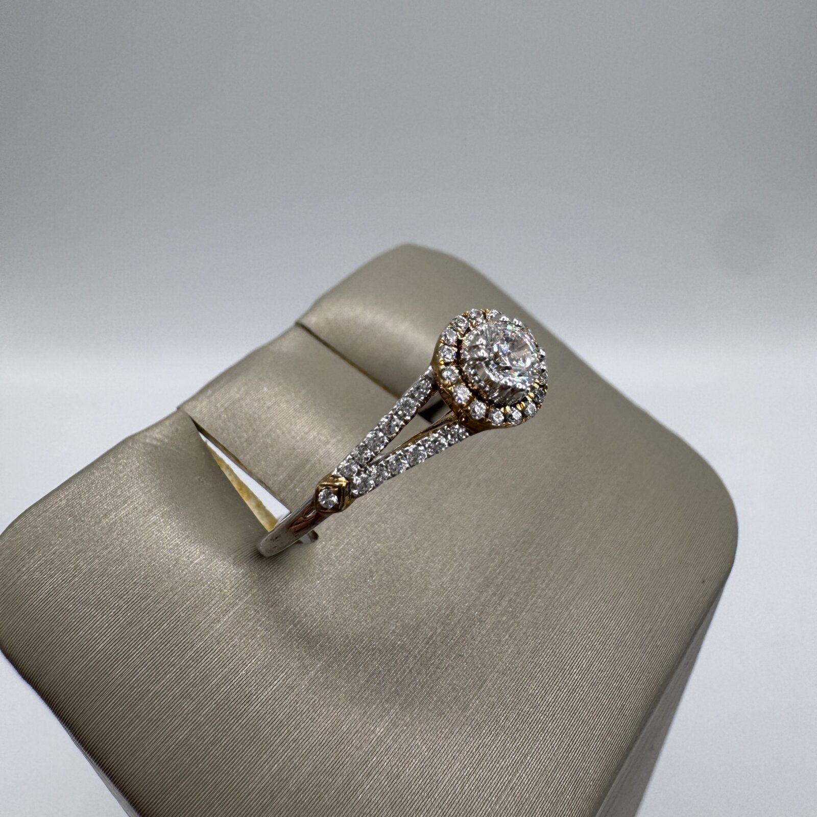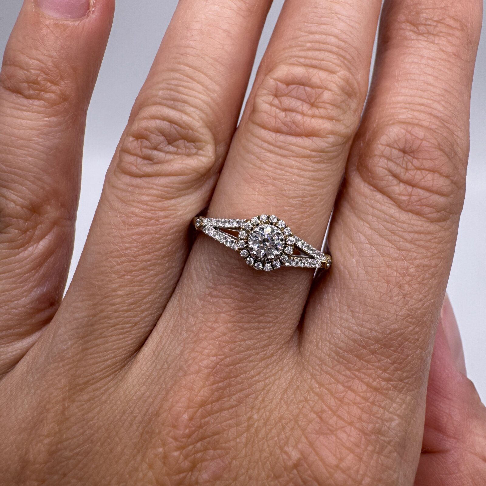 This stunning sterling silver ring features a brilliant round simulated diamond at its center, surrounded by a sparkling halo of cubic zirconia for maximum brilliance. The split shank design is lined with additional CZ stones, enhancing the ring’s shimmer from every angle. Perfect in size 7, this halo-style piece offers timeless elegance ideal for special occasions or adding a touch of glamour to everyday wear.