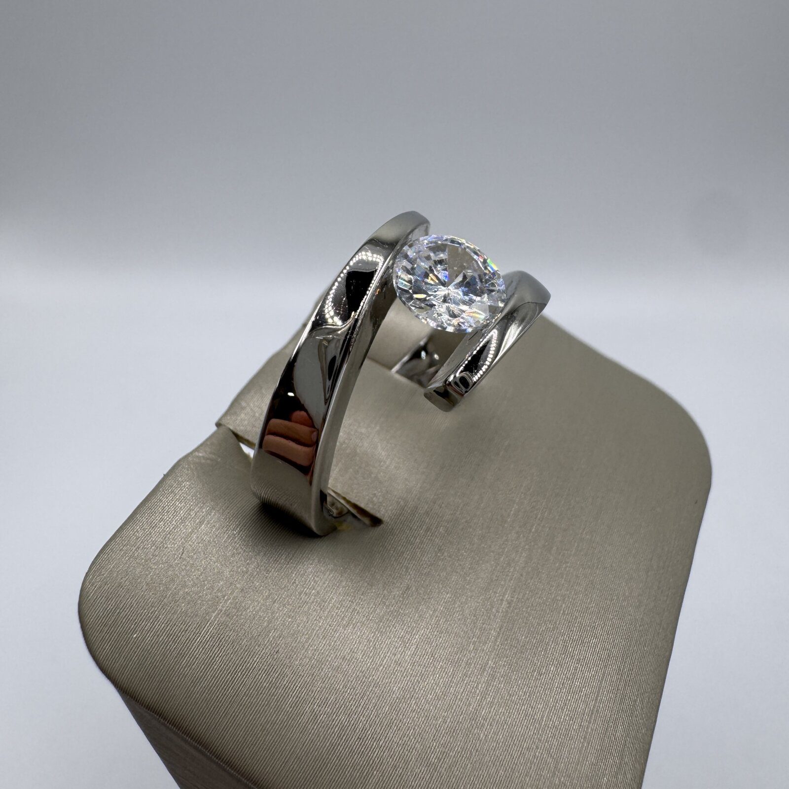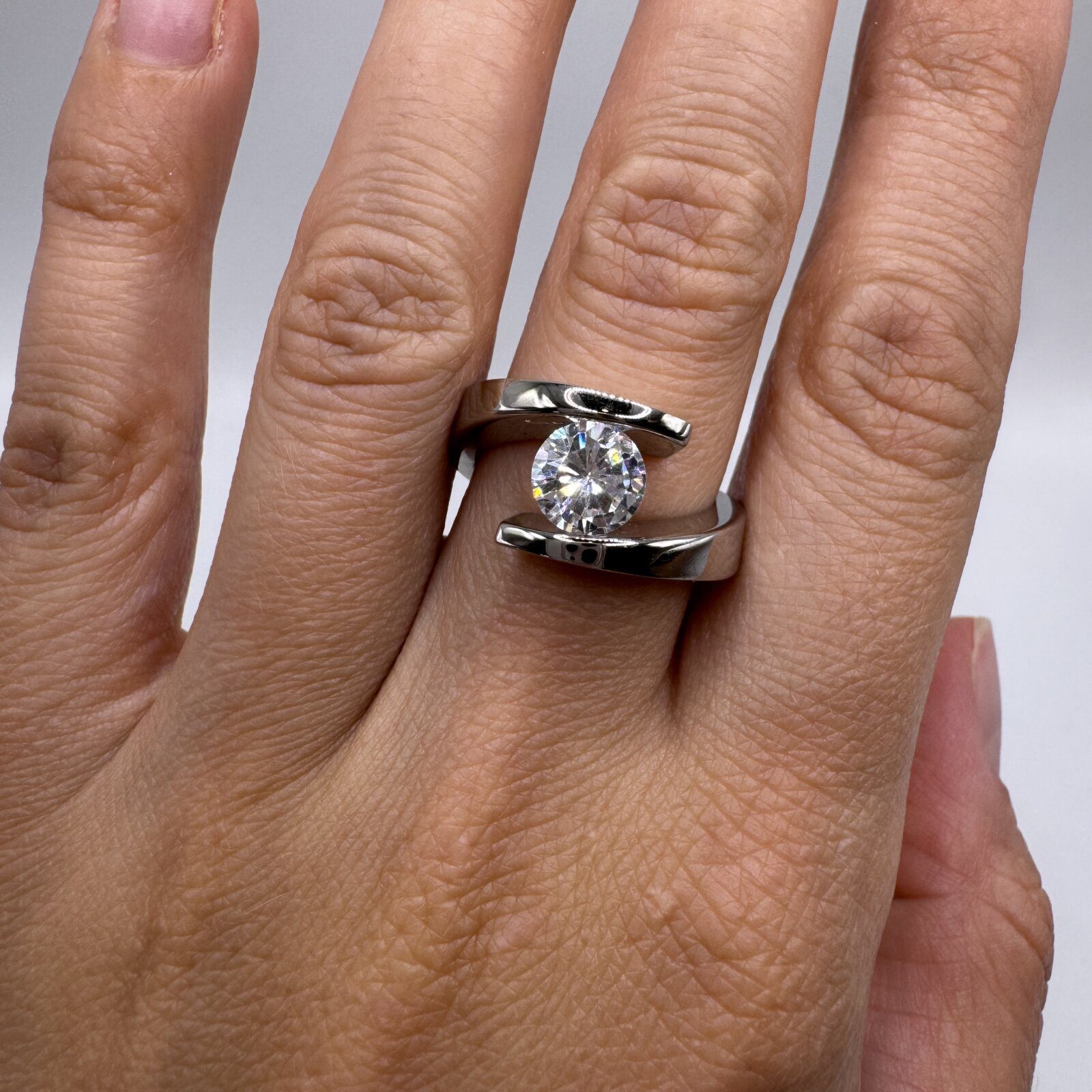 Titanium Round Simulated Diamond 2Ct CZ Solitare Stone Ring