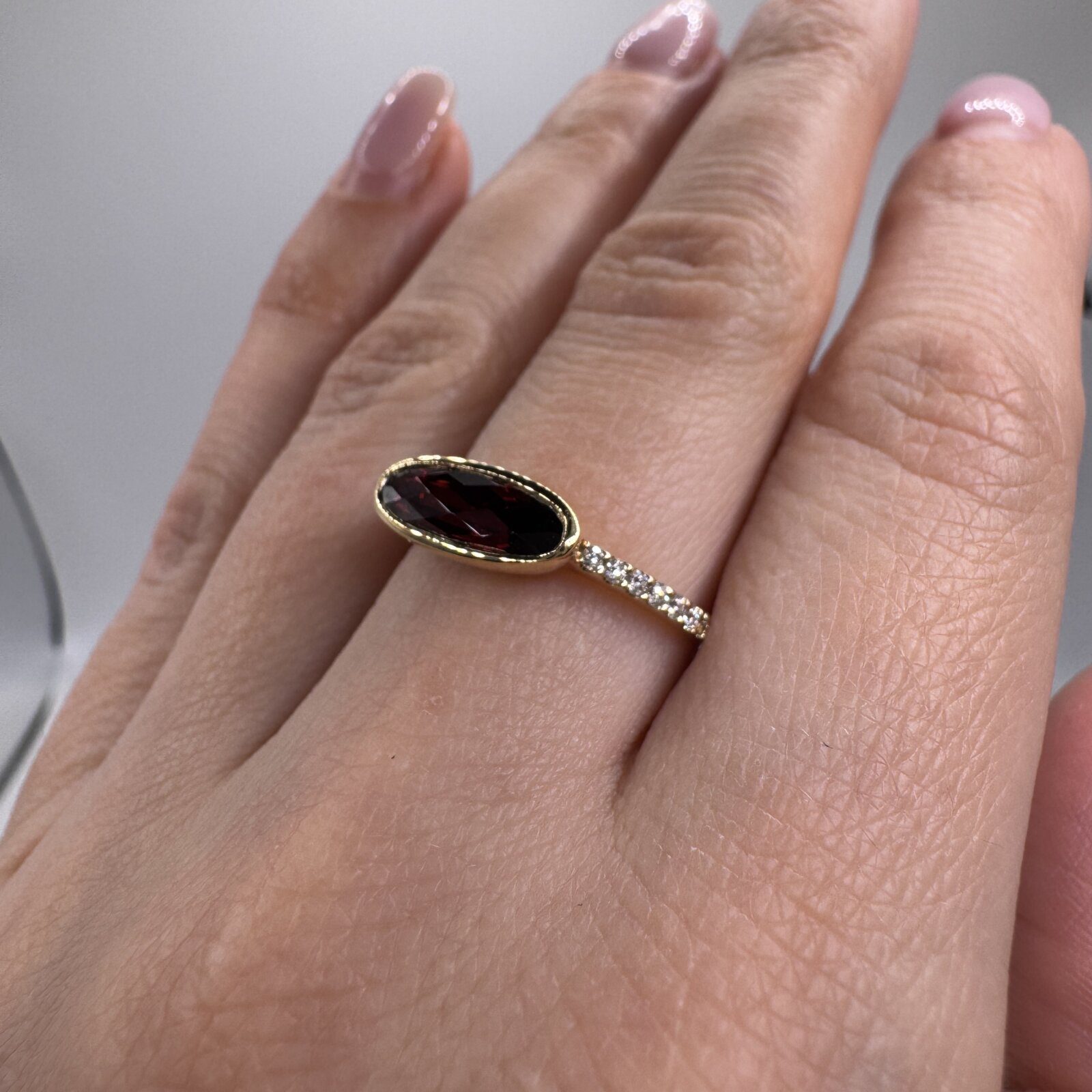 Garnet Ring in Yellow Gold With Diamonds