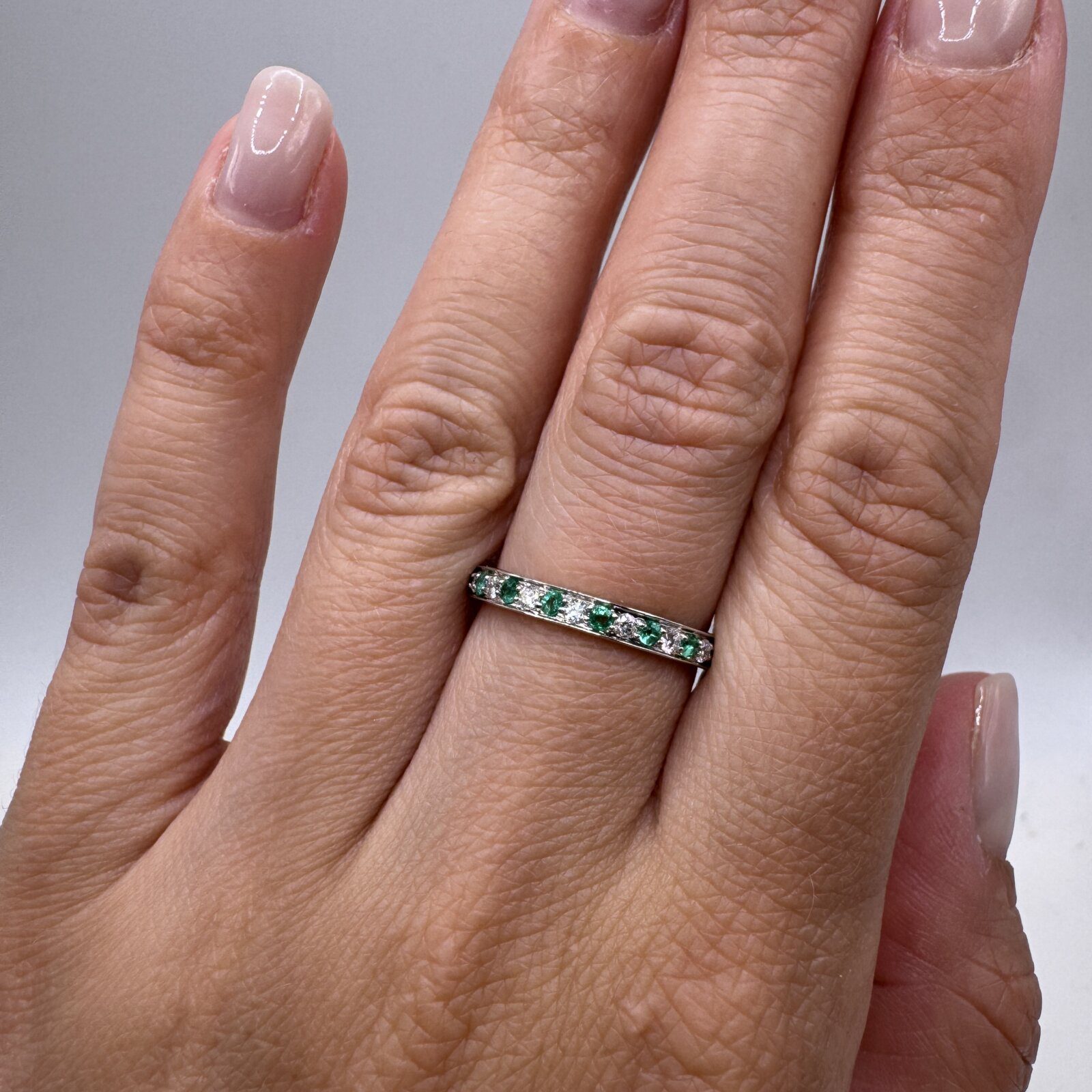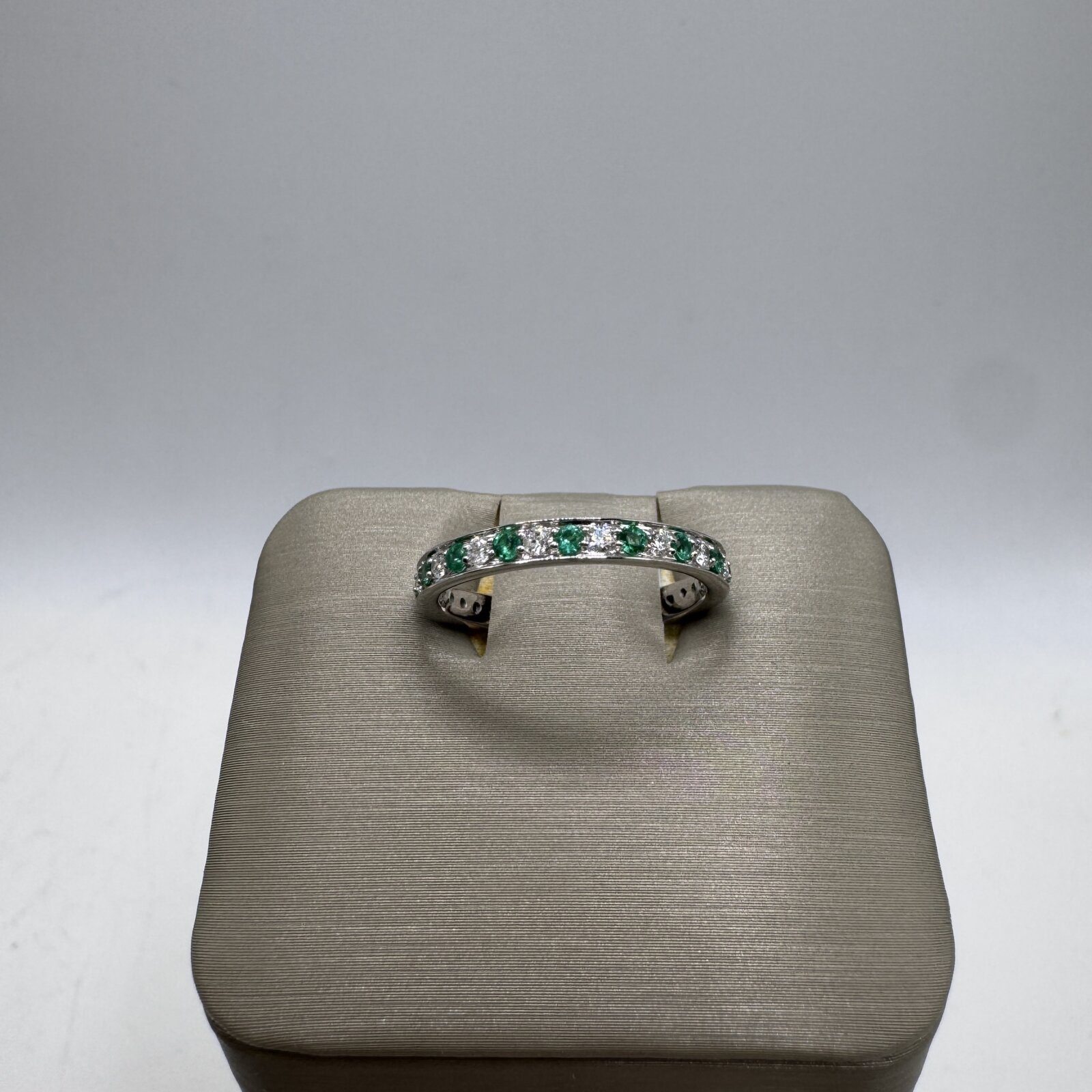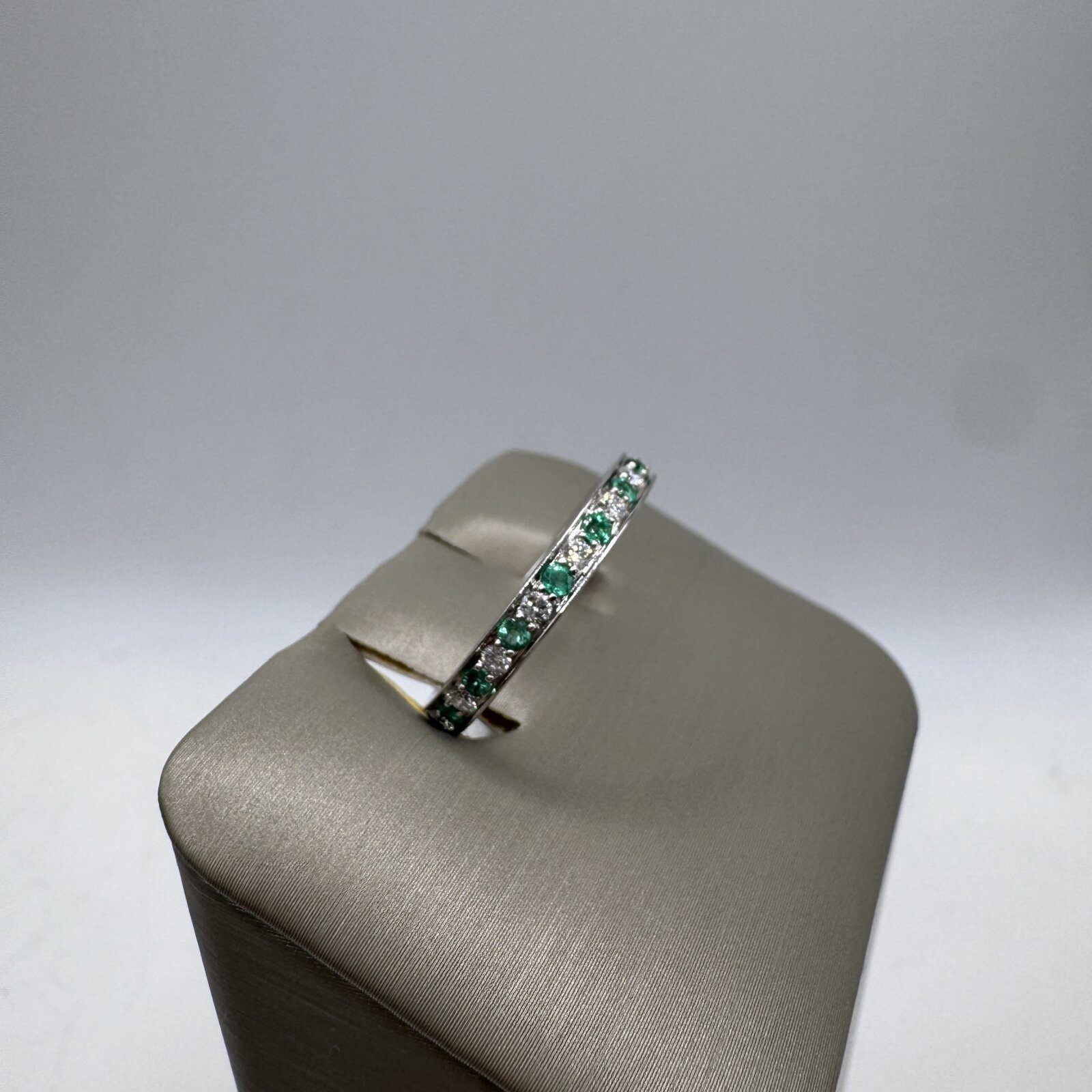 Natural Emeralds 0.38ct and 0.34 CT. T.W. Diamond Ring in 18K Gold. Emerald, the birthstone for May.