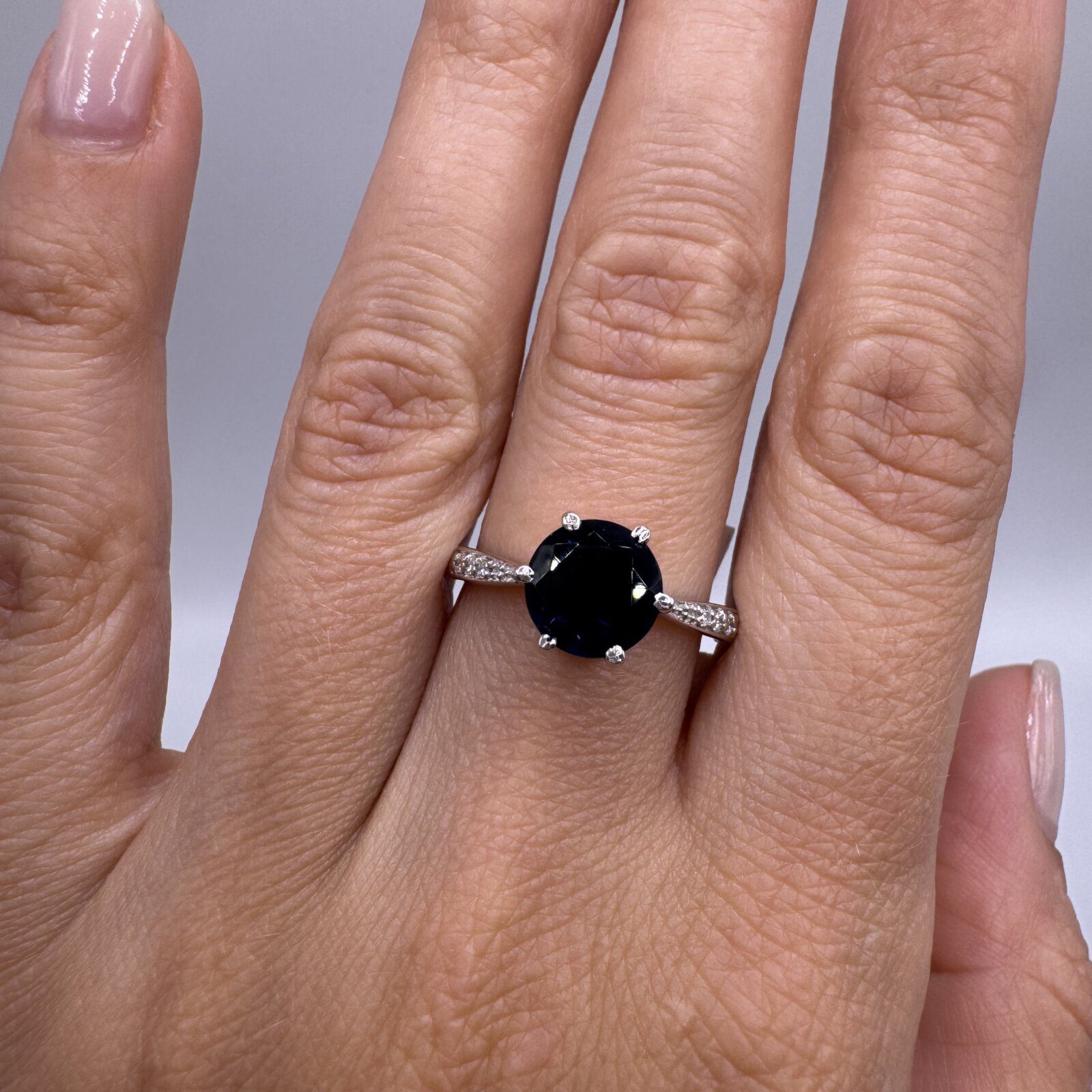 This elegant sterling silver ring showcases a 1.75-carat deep blue iolite gemstone, held securely in a classic six-prong setting. The split shank is accented with sparkling cubic zirconia, adding brilliance and contrast to the rich hue of the center stone. Perfect in size 8, this piece offers timeless sophistication with a touch of vibrant color.